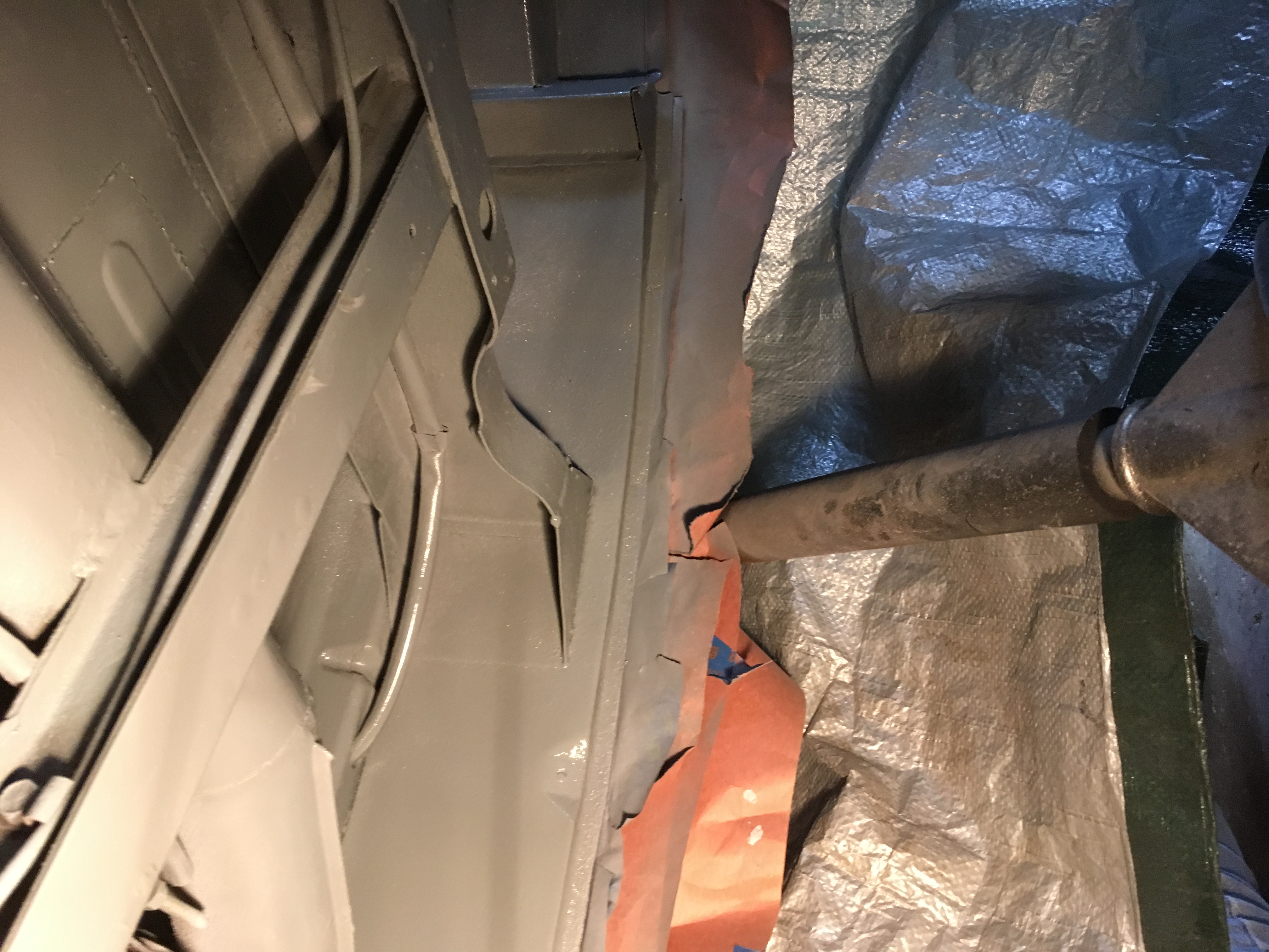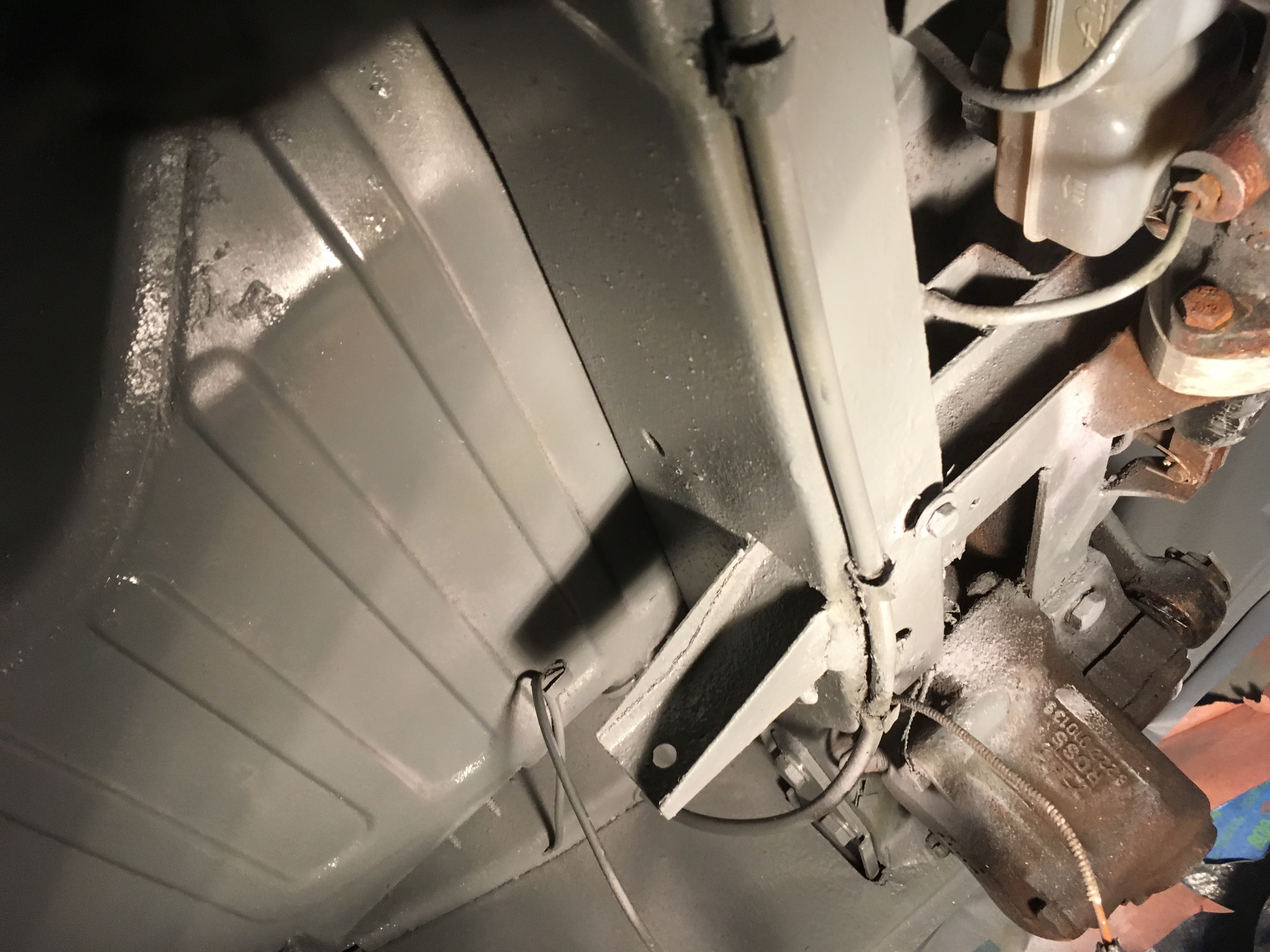 I finished getting the wheel wells painted and decided to do under the front nose as well. The underside of the nose was very solid. Some surface rust was about all I saw. I used the same process and just finished putting the final coat on this AM.