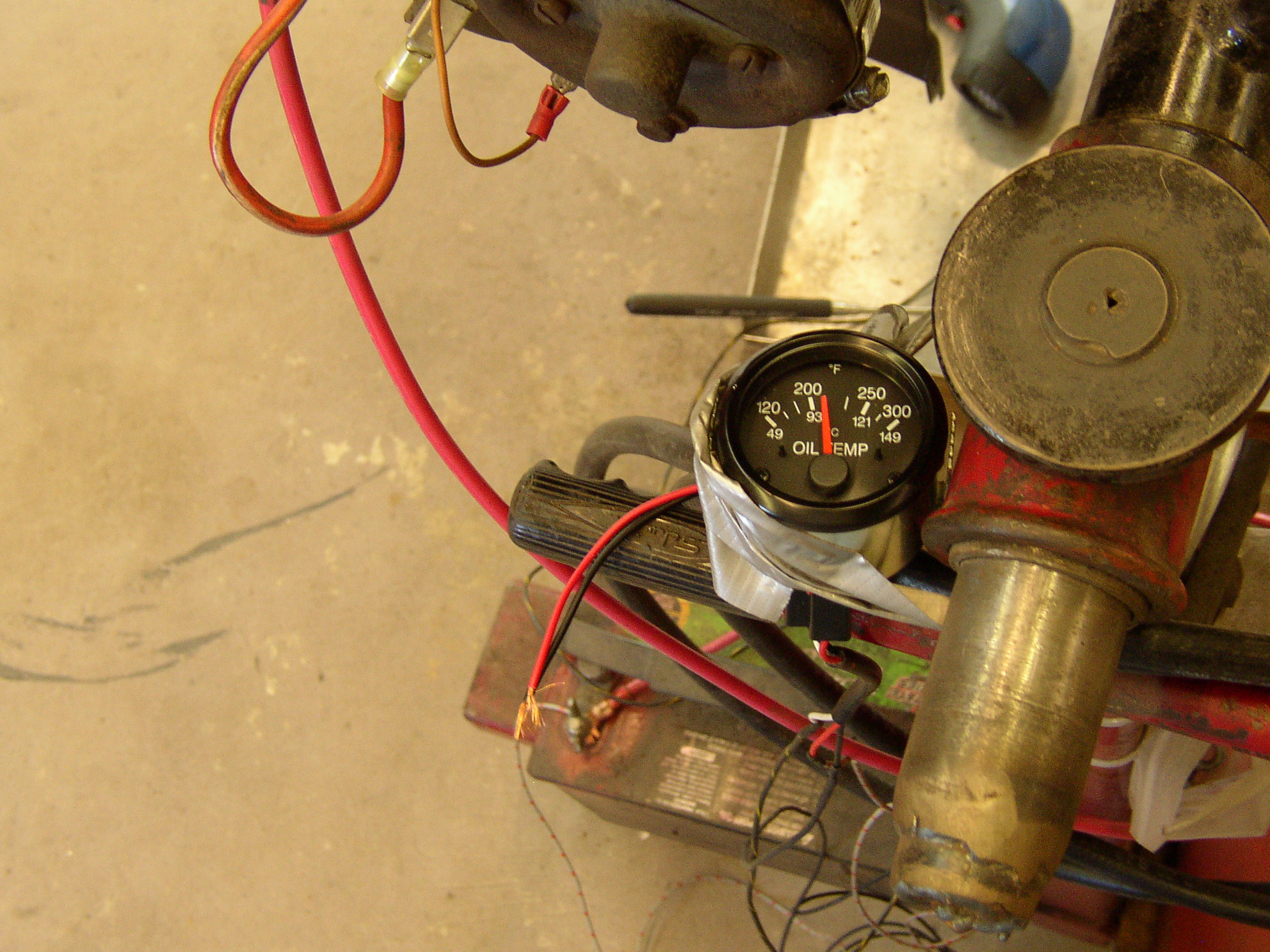 but breathes well! You can hear it, but it's not loud or throaty at all. I temporarily mounted an oil temp gauge in the hole where the clock was. Has over 300 miles on it, runs great! I think the carb is dripping on a hot soak so that has to be addressed, no biggie. Displacement is 20% larger than stock but feels like 40-50% more power with the cam. On a stock engine if you give it 10% throttle or 100% throttle there's very little difference. On this one there's a big difference.