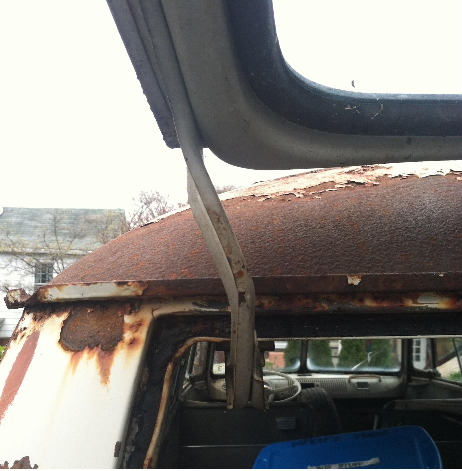 I have got some questions about my bus's rear hatch. I believe the hatch itself if straight and fine, but the right side does not look straight, it looks like somehow it got bumped or bent.