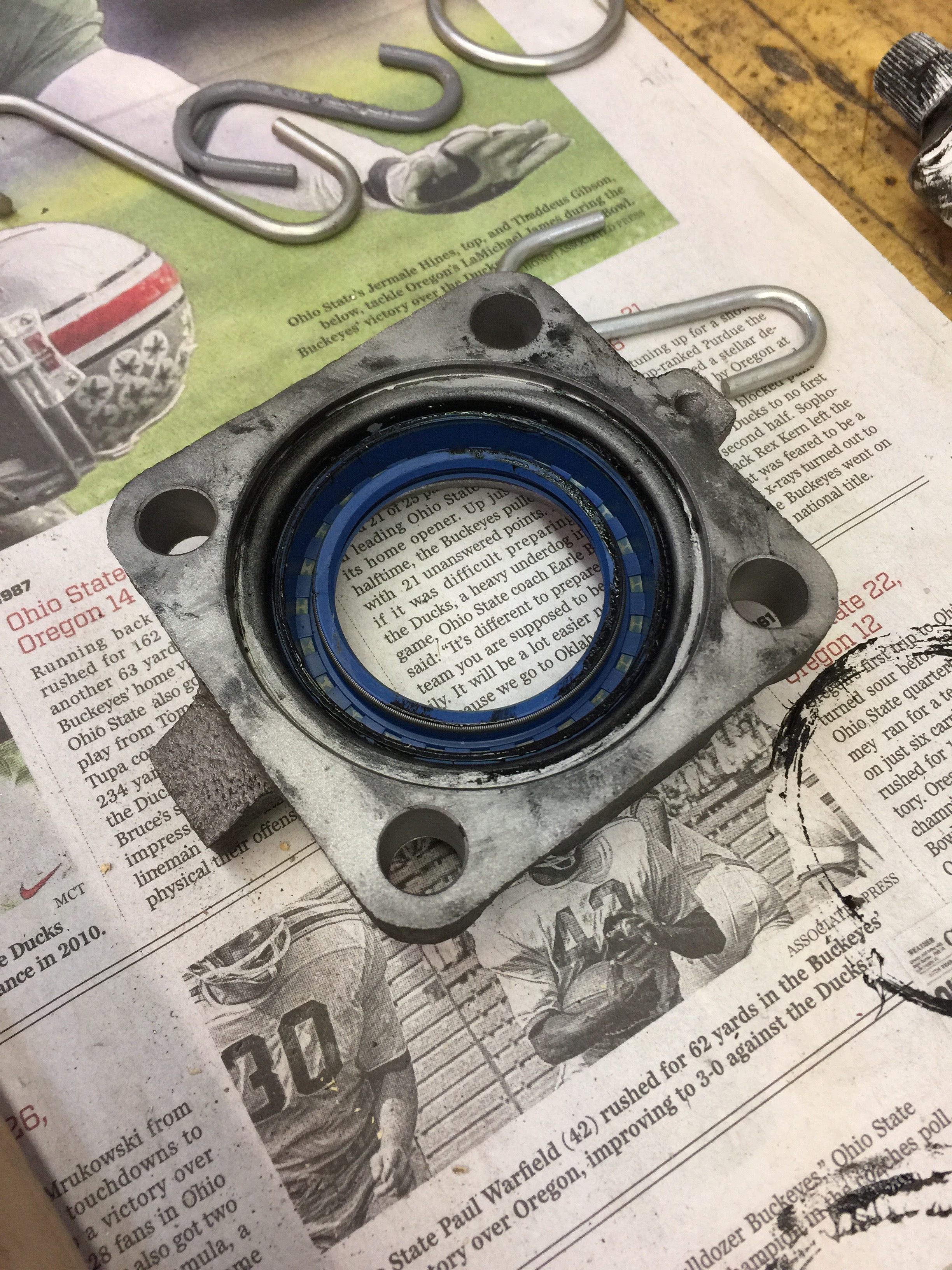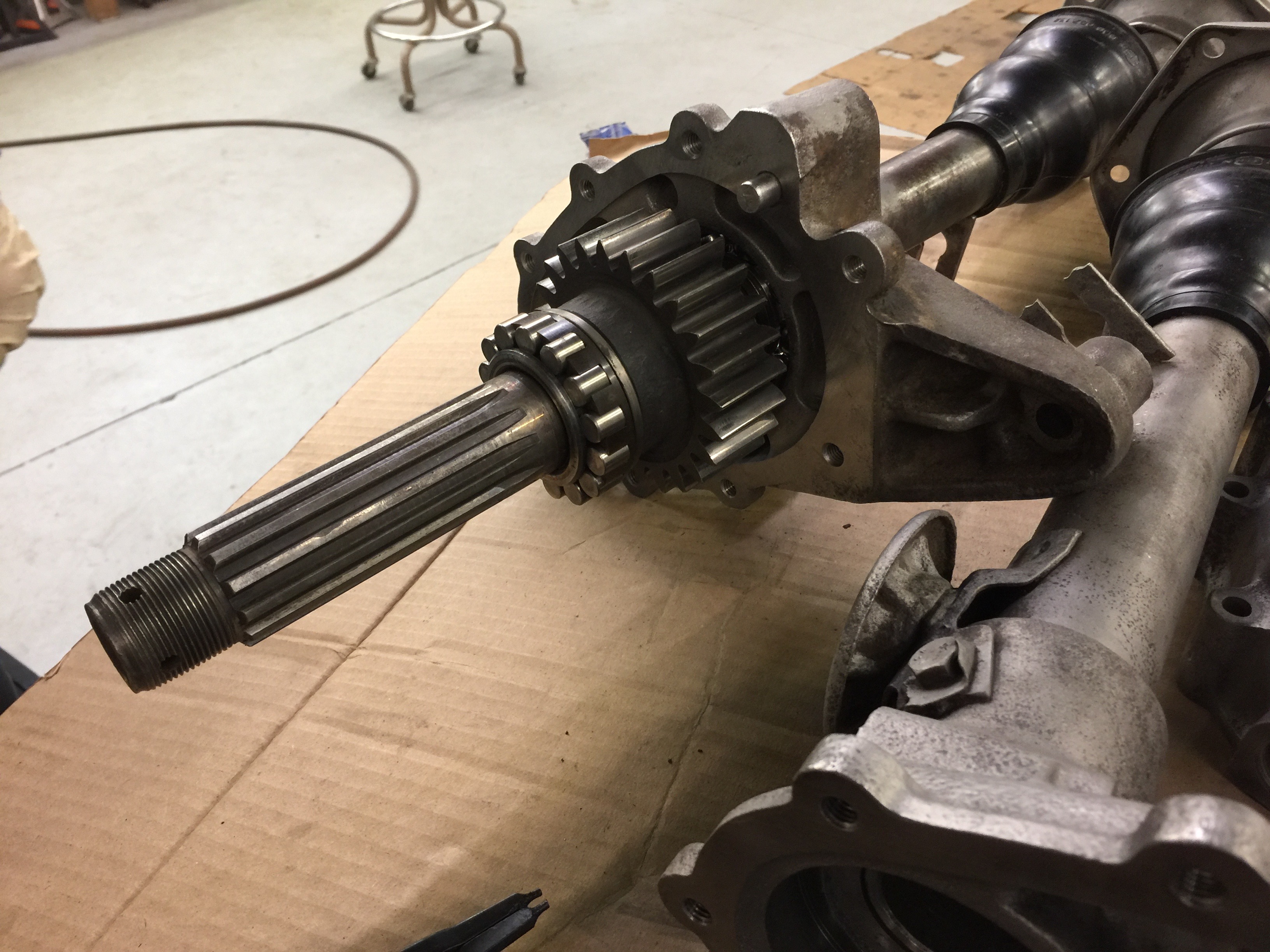 We had one issue with a bad outer axle bearing, but Bruce had a backup. Some of the other original bearings were bad, so Bruce swapped them out. Someone in a prior life really butchered one of the RGB housings (probably trying to get a freeze plug out) but Bruce cleaned it up. (You may see that prior damage in some photos)