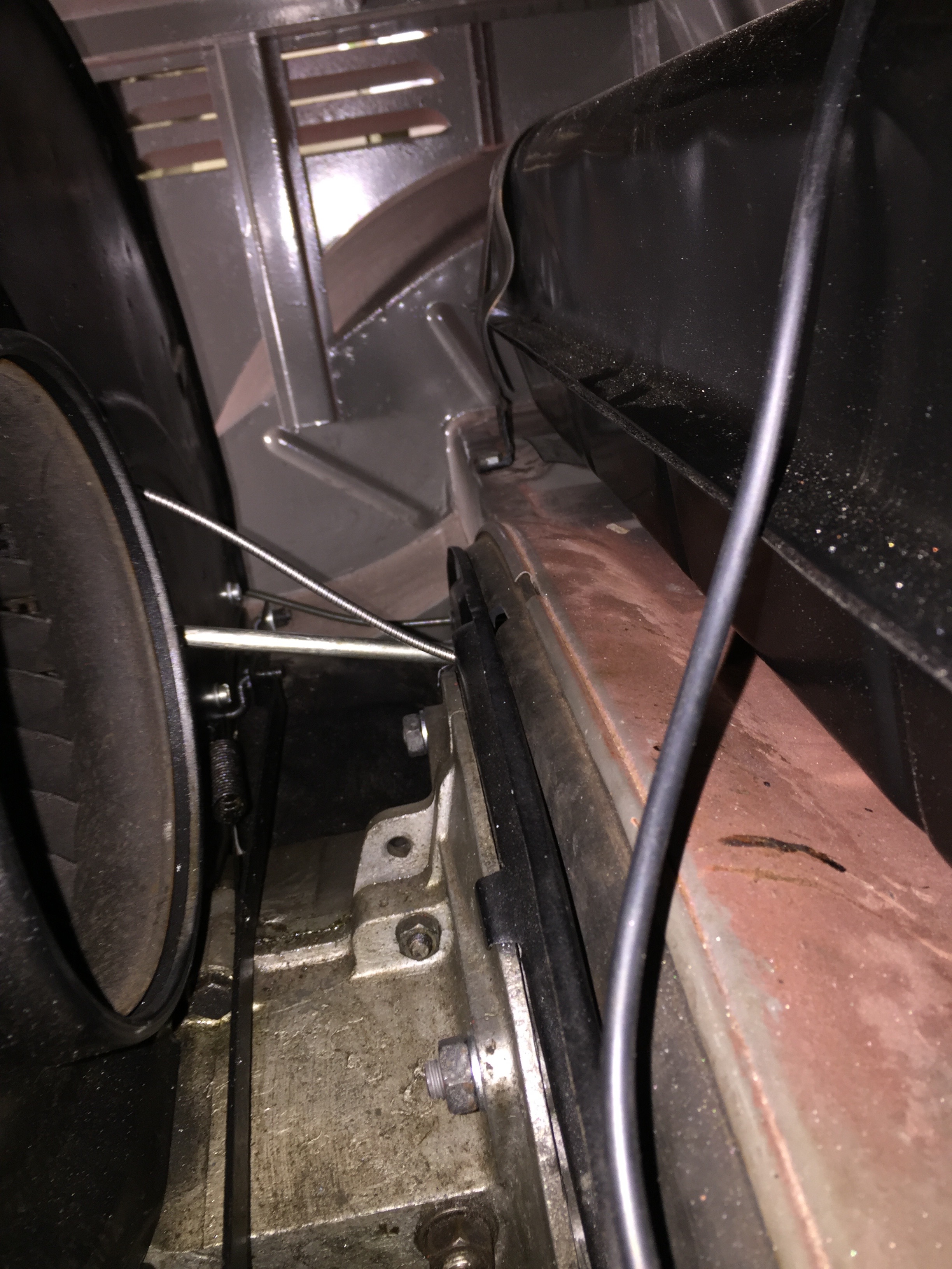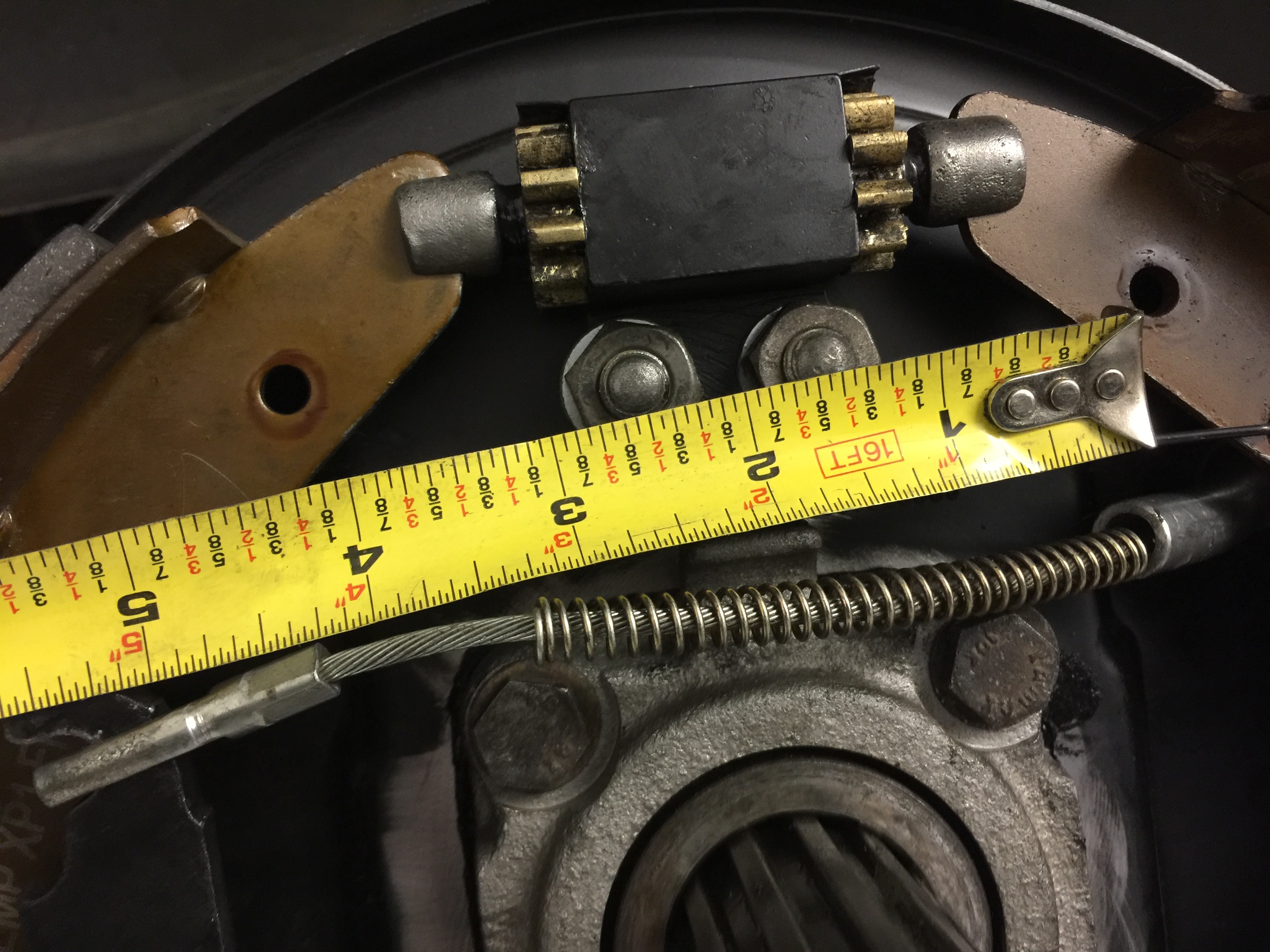 Here was the McGiver rear brake cable with earlier spring that we replaced with a beefier model.