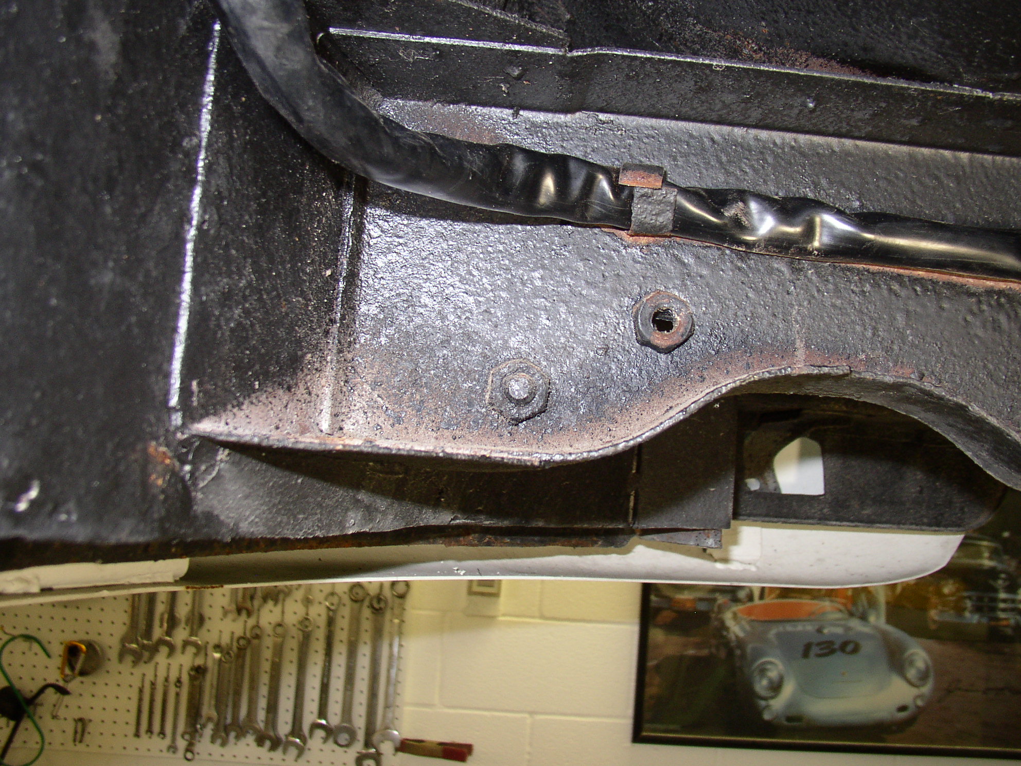 I did get it out and chased the threads, cleaned all of the f'ing undercoating from the rail and installed the correct 10mm bolts. I hate undercoating, it does nothing on a classic car but hide bad bodywork, rust and other issues. It's a huge turnoff for me to see undercoating on the bottom of a car.