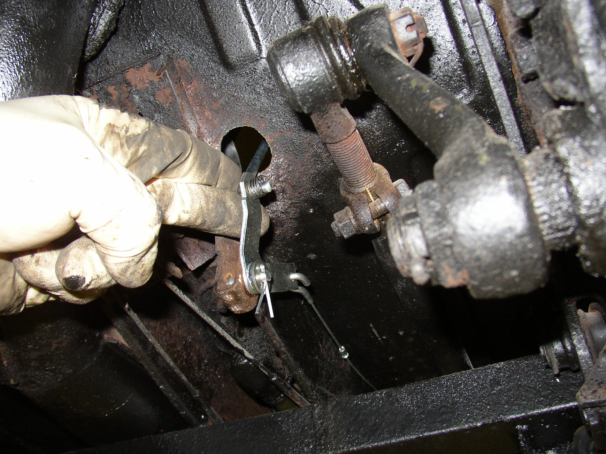 I noticed some other issues while I was working, like the throttle cable binds badly inside the tube, the throttle linkage lever in front was really worn out and one of the spring clips was missing. This shit was also rusted to where it had to be cut off with a whizzer wheel.