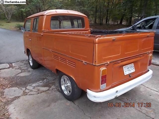 This is my new project. It is a 1974 Double Cab originally delivered to Panama. It came with the dusty roads package, a beefed up rear suspension and an air cleaner that breathes through the frame rails via a vent at the back of the cab. 1600 cc dual port. From what I have learned it also spent some time in Nicarauga and Mexico before being brought over into Texas. My father and I purchased it from a man in Georgia.