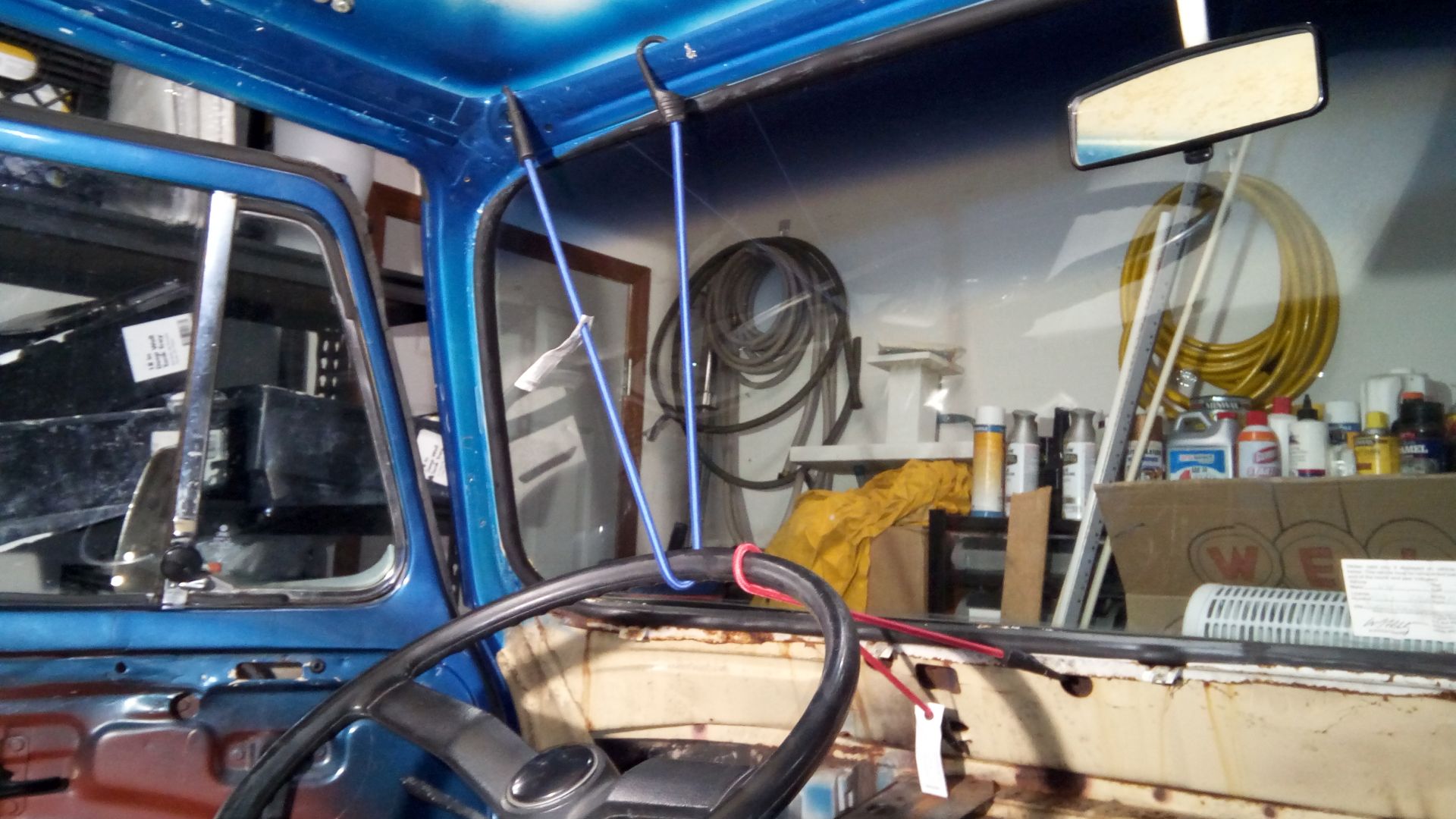 Over the next few days I gutted the bus. I have a big stash of labeled ziploc bags with all the hardware. Removing the dash took a while. bungees came in handy for supporting the steering column