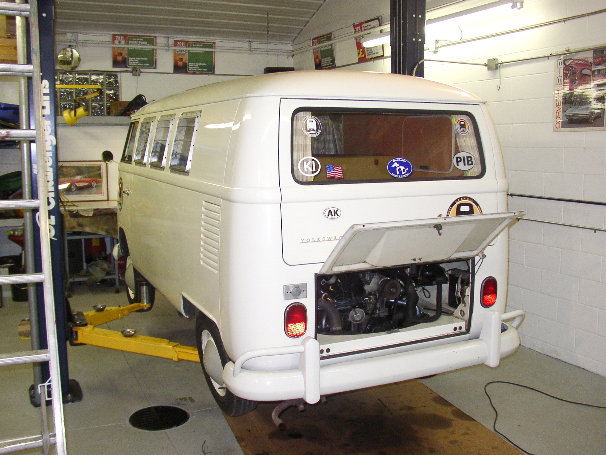 I had Joe and Jackie's bus in for oil leaks, finding a leaky oil cooler and trans input seal. All fixed, bone dry now.
