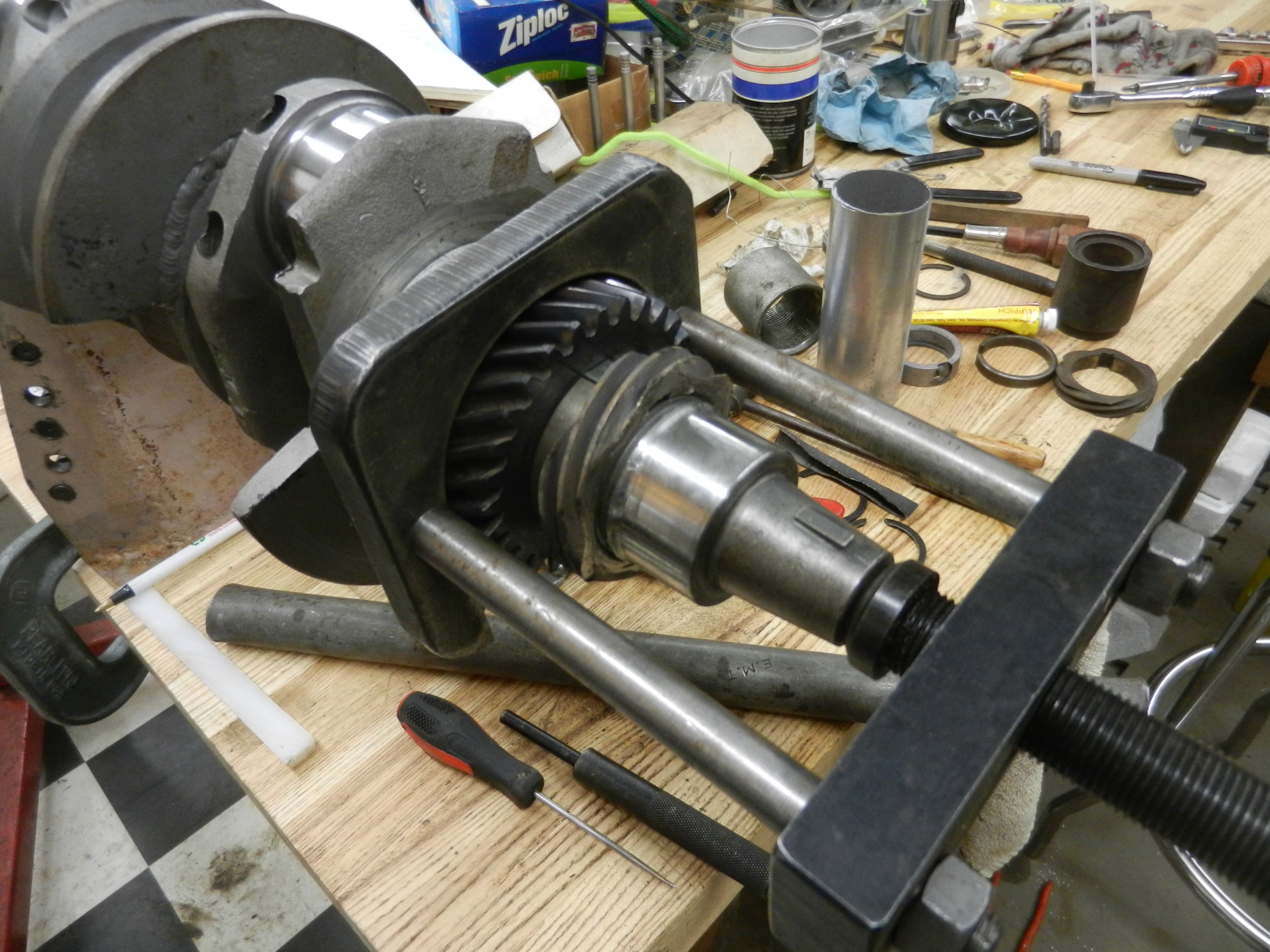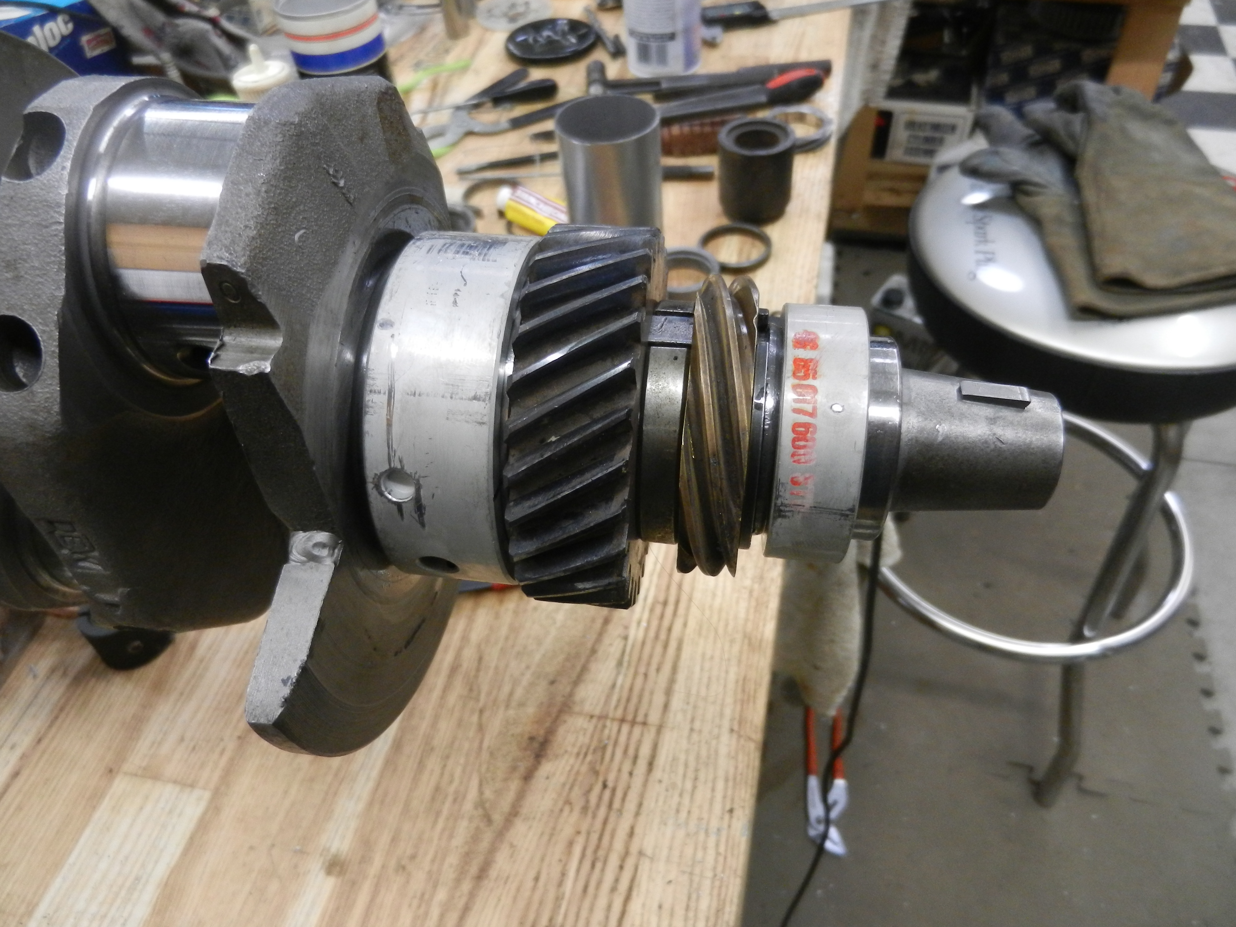 Now to install the crank gears and # 3 bearing. Bruce documented this well and the procedure for type 1 and type 4 are the same. BUT, I had a little problem.