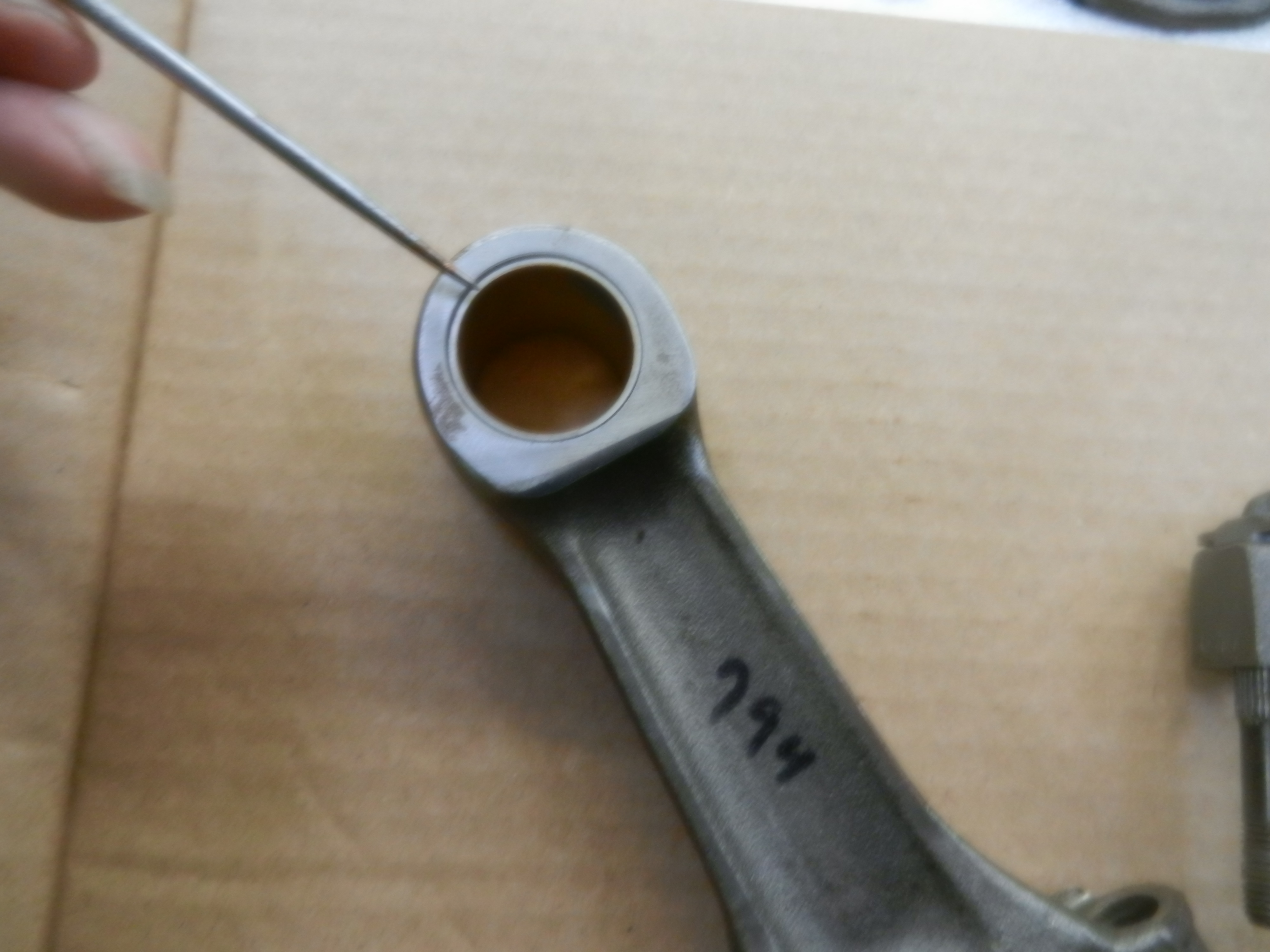 To re-bush them, install new bushings in the small end. For this process, they press out the old bushings and press in new bushings which have a smaller inside diameter, then hone them out to spec, using one of your wrist pins for measurements.