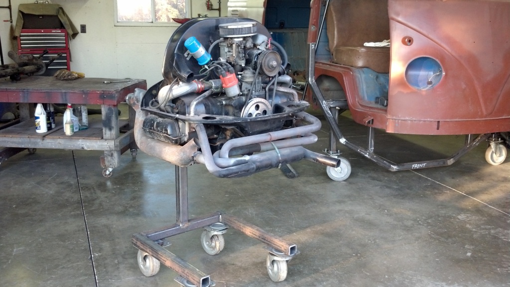 Its easy to get side tracked. I got material left over from my rotisserie i made made for the 62. Looks like you used the same sq. stock for that engine stand? You have have inspired me to make one myself. The 61 came to a halt to work on that single cab for framingsilly PLUS im trying to get that vanagon i picked up on the road. 3 busses in a 24x60 with parts everywhere lol. Your shops bigger plus you got that lift. I envy you im tired of rolling around on the floor haha. I meant to ask in the last post, what kind of welder are you using? Amperage wise i mean? Ive been running flux on a 110 Lincoln and it blows!! I was gonna switch to .030 standard wire with 75/25 gas. I need a tank first tho.
