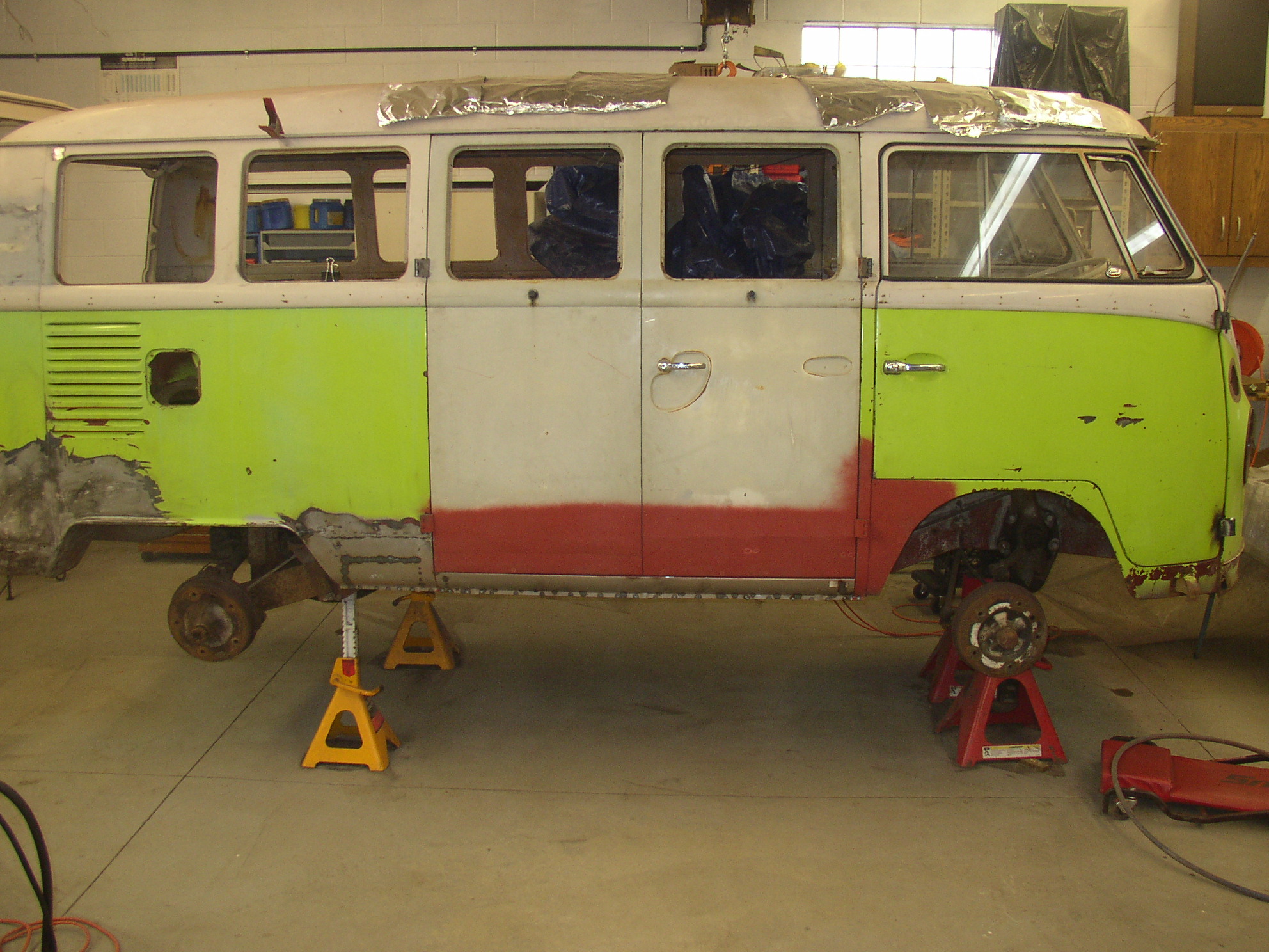 You haven't seen my welds close enough to judge them, and they suck. I have plenty of issues with hand/eye coordination, steadiness of my hand, burning through, no penetration, wandering off course, etc. I'm not young and my eyesight shows it. I can't count how many times I'm welding along, flip up my helmet to check how things are going, and find I've wandered offtrack and nowhere near the two pieces of metal I'm trying to join. I've run a complete bead before to find that it was only on one of the two pieces and the complete weld never touched one of the components. My metal fab skills regarding fitting metal together are "OK", but I'm no metal pro. My welding skills are sub-par. Blob it on, grind it off. Blob more on, burn through, fill the holes, grind it off. I'm a very uncoordinated person in general and cannot walk a straight line (sober), draw a straight line, write penmanship that people can read (even myself), or anything that requires even a bit of grace. My wife can't hang pictures in the hall because I run into the walls at home when walking. Nothing shows this uncoordination better than trying to fit and weld a body panel. If my bus looks as good as yours when it's done I'll be very happy.