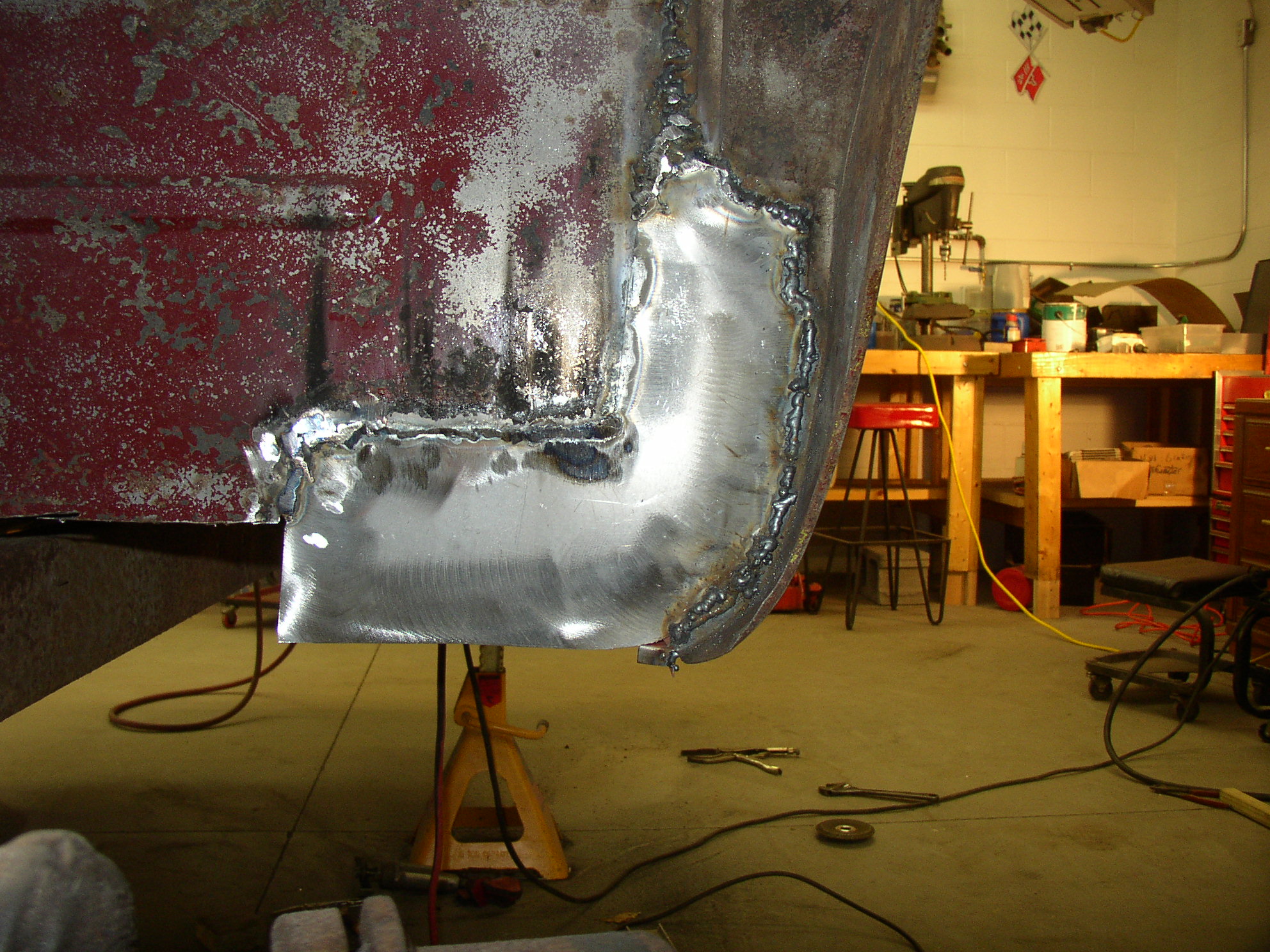 Looks like you have a nice fit with the area where the seam meets the rear wheel well. I got lucky with mine by overlapping the wheel well flange on the new metal that covered that connection point. I didn't know what I as doing. I was just lucky! Your's looks a lot better than mine!