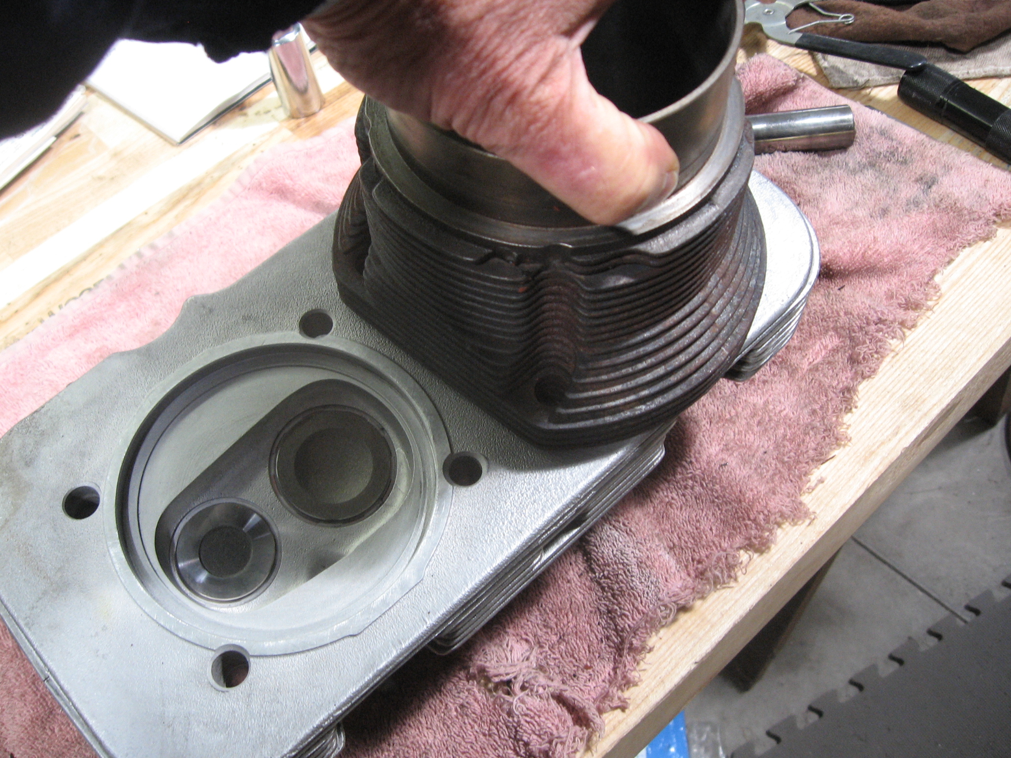 Lap the cylinder into the head. Be sure to take a minute and mark which cylinder goes in which head chamber.