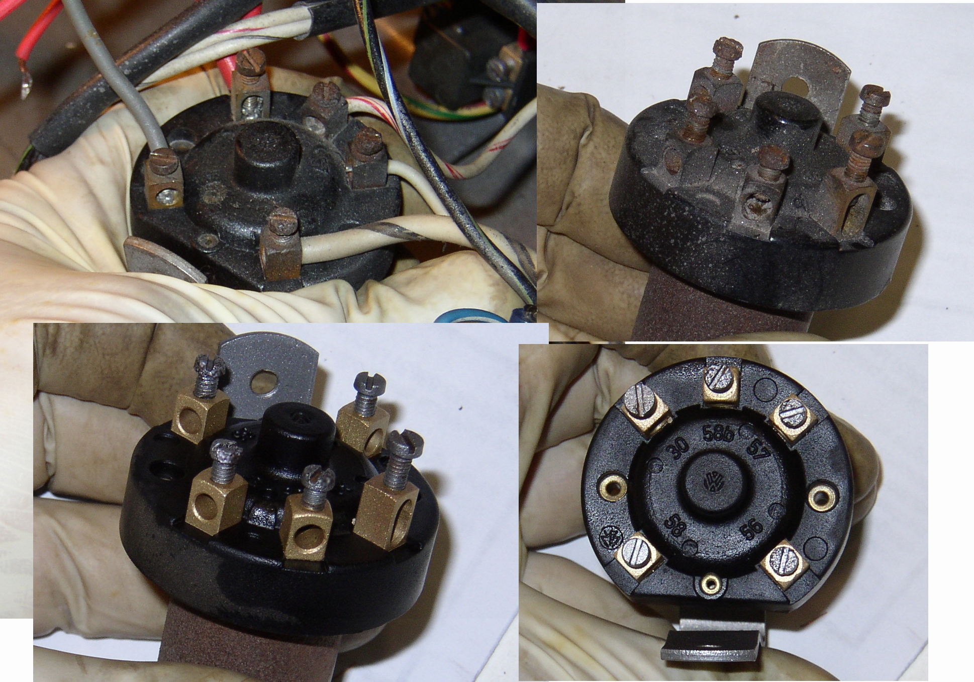"I just finished a repair job in my shop, it’s a 50’s VW that someone (several owners previous) replaced the wiring harness in. The car had not been driven in many years so the new harness had zero miles on it. The problem is the harness installer did not take the time to do the job properly. When installing a harness, there’s a lot more to the job that simply undoing the old wire and replacing it with a new wire. Virtually every connection that you touch must be removed and cleaned in some manner. That means every switch, every fusebox, every light socket, every ground must be removed and serviced. It also means that you must have the proper tools and terminals to do the job. Wiring is expensive- to do the job properly eats up time like there’s no tomorrow. I had well over three full days on this car re-doing what could have been done correctly the first time. To verify every connection had good electrical integrity means cleaning whatever it connects to, I ended up removing every single electrical component from this car and bead blasting it. There was “green death” (corrosion) on many of the surfaces with a brand new wire attached to it. Six volt systems don’t give you a lot of pressure to start with- voltage is pressure in electrical lingo, and starting with only 6v means you’re already at a disadvantage. If you don’t have every single connection pristine you will have voltage drops that add up to a problem or a dim light. This is commonly why people put “fast start relays” in 6v cars, because there are voltage drops in the system. The relay masks that and makes the starter work normally, if the starter is good and the system has normal voltage drops, you don’t need a fast start relay. Bead blasting the fusebox guarantees there are no connection problems at those points which I wrote about a couple of months ago. This is indicated by the “spin the fuse to get the light to work” symptom from having a bad connection. It’s also common to have a light bulb not work until you wiggle the bulb- this is the same problem, a simple case of minor corrosion on the socket itself. Bead blasting these components eliminates this issue. To do this job correctly the guy should have removed every component, driven down to his local machine shop and had the parts blasted. This is more costly in time than money- I doubt a retail price to blast all of this would be $30-50 as it takes about one minute to do each component. It might be more of a situation where the installer doesn’t want to take the time to do the job right. Instead, the job has to be done twice.
