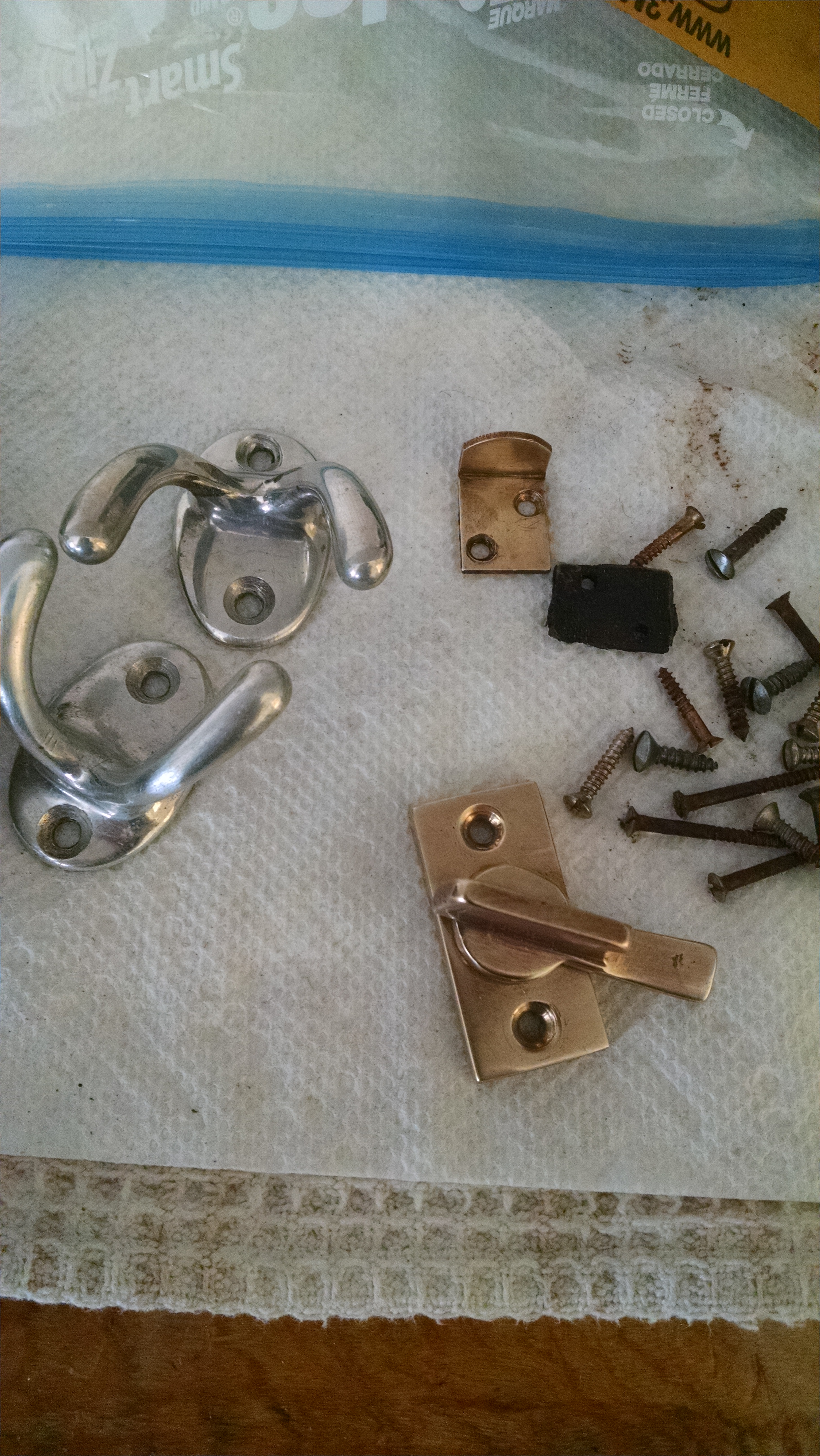 I finished putting the clear coat on the floor this weekend, 3 coats total. The hardware is cleaned, polished and being installed on the cabinets. My Aunt made me some new curtains to go with the new seat upholstery. She made me a little wreath as well. I will have to find the perfect spot for it.