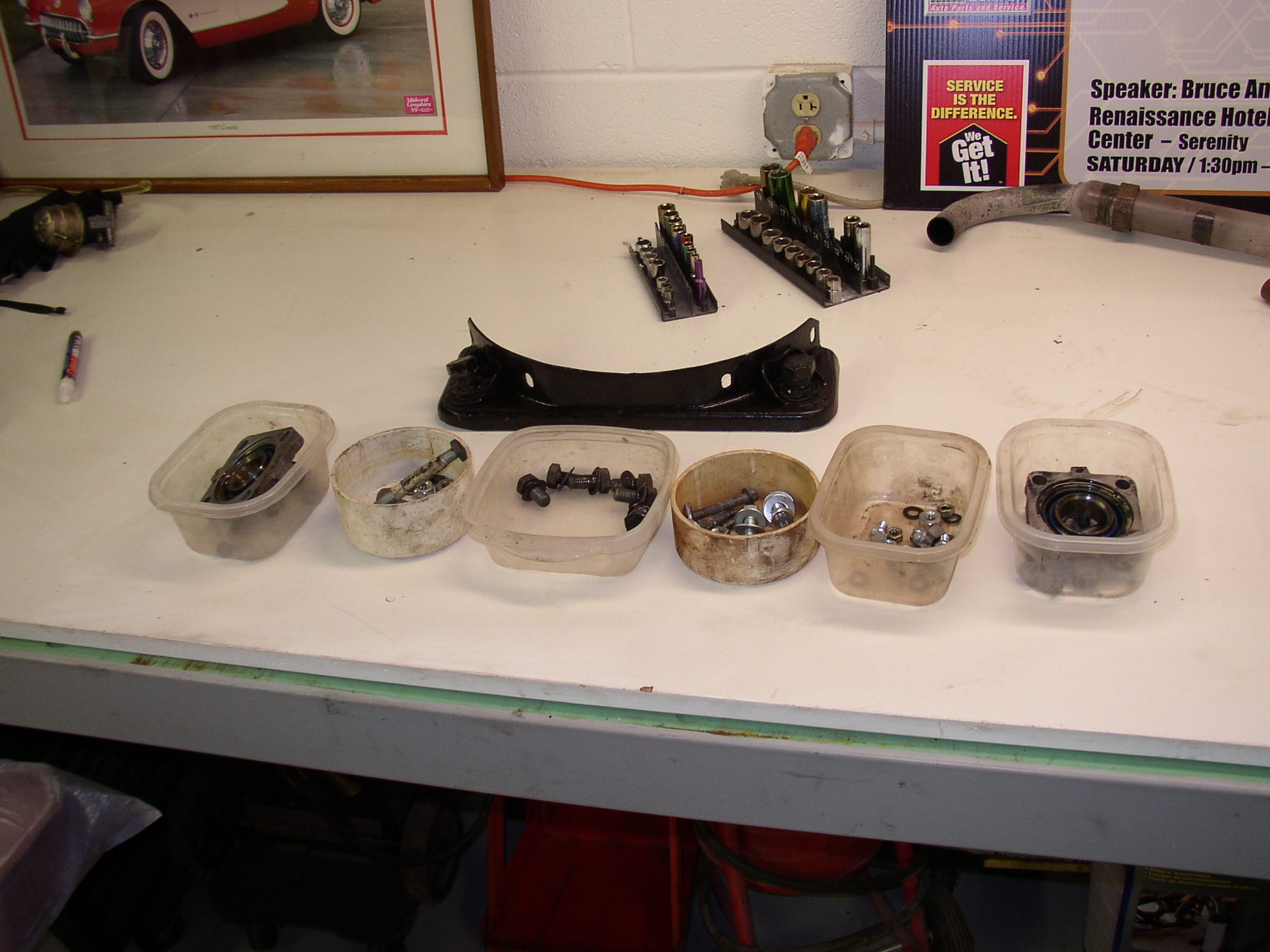 Having everything organized should make installation easier. This is like working on a brand new car- 2.5 hours to get the motor and tranny out and that was taking my time, if I hustled I could have done it in half that time. It should only take 2.5 to put it back in, right?