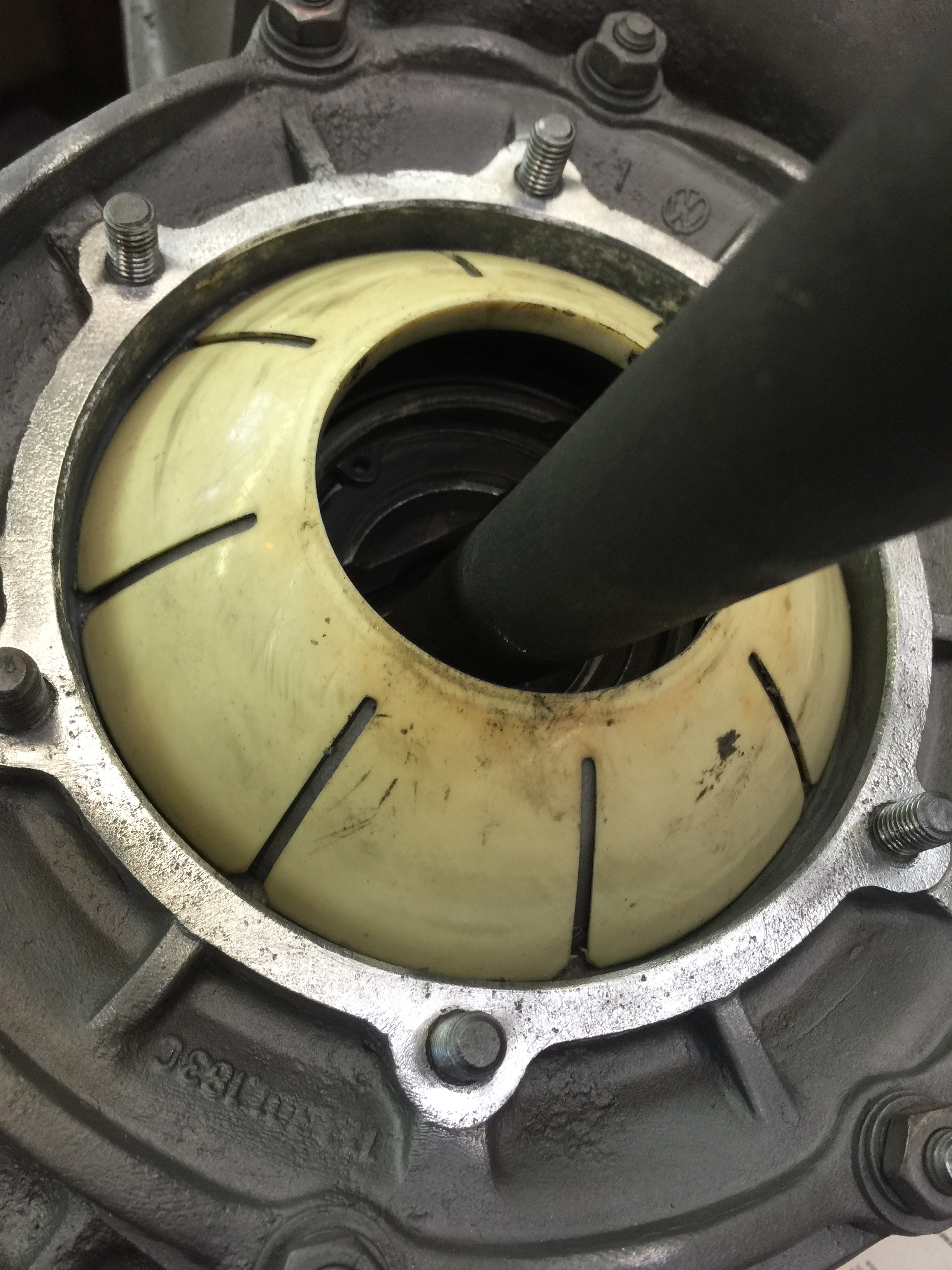 We had one issue with a bad outer axle bearing, but Bruce had a backup. Some of the other original bearings were bad, so Bruce swapped them out. Someone in a prior life really butchered one of the RGB housings (probably trying to get a freeze plug out) but Bruce cleaned it up. (You may see that prior damage in some photos)