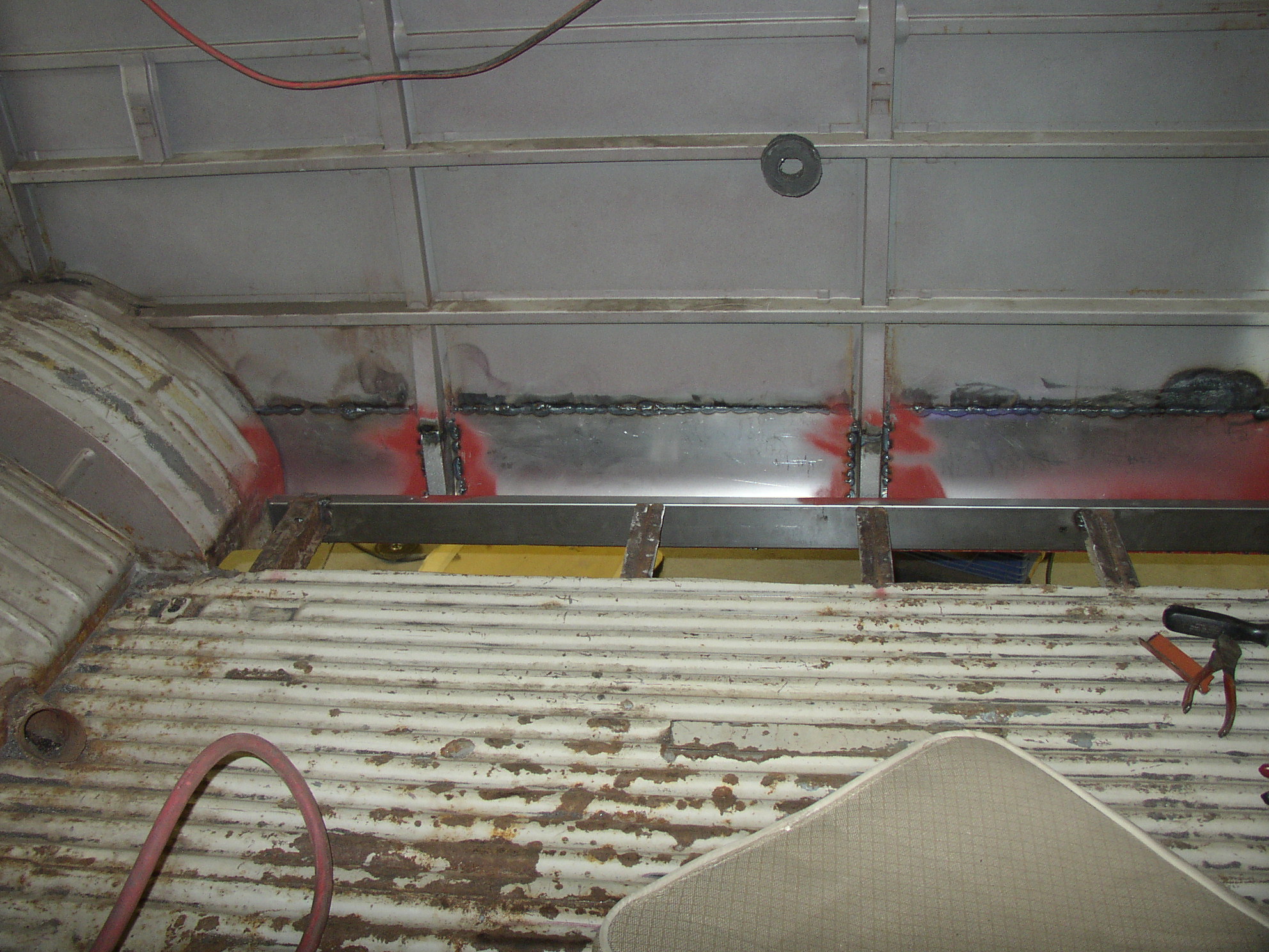 Here's the floor done with seat mount in, but I didn't have time to grind it out yet. Thankfully with the new Miller there's a lot less grinding.