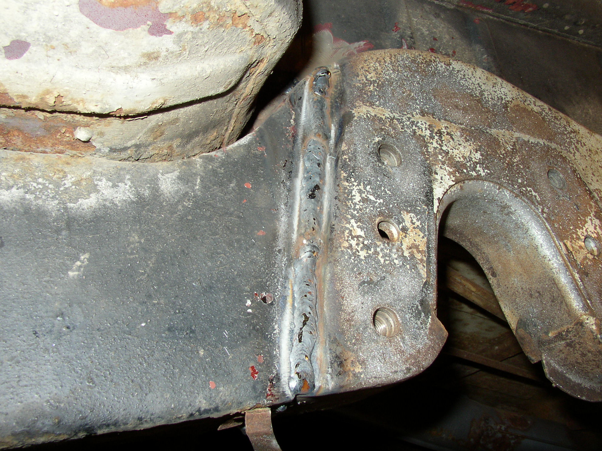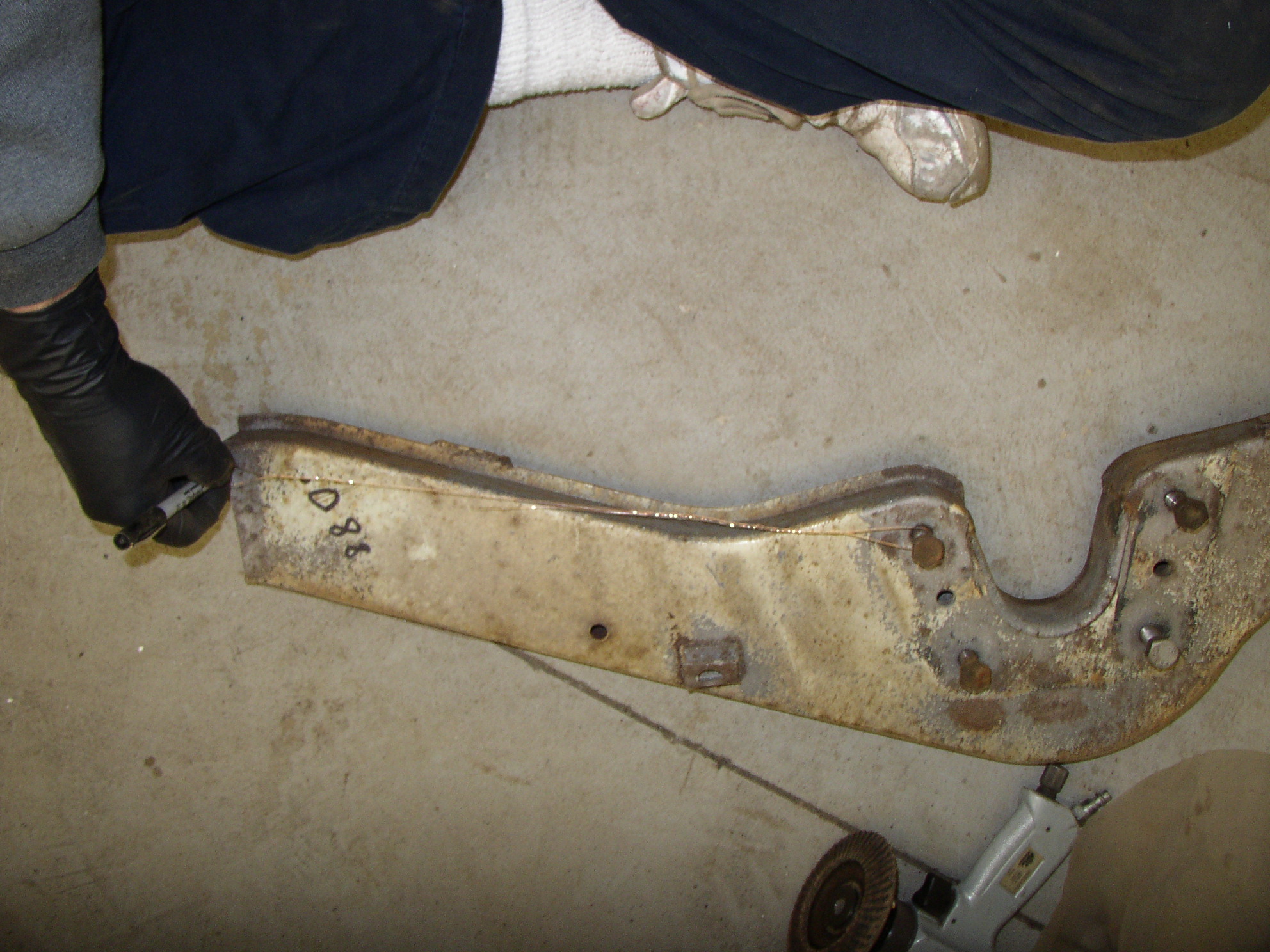 Next: The right rail "looks good" at a glance, but it's tissue paper. Gonna cut and splice it too, but probably behind the axle bolt flange so it should go easier. The left rail took about 5-6 hours to replace, which I thought was pretty good.