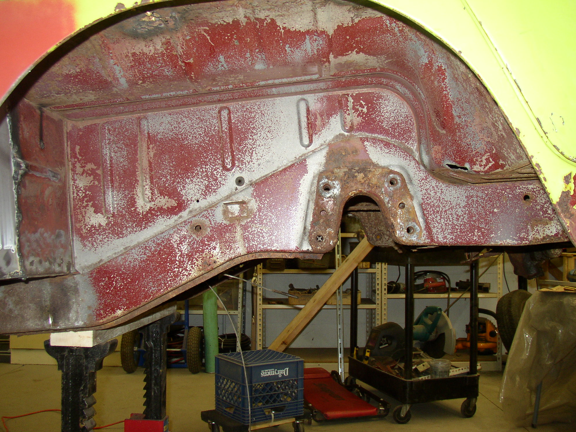 Next: The right rail "looks good" at a glance, but it's tissue paper. Gonna cut and splice it too, but probably behind the axle bolt flange so it should go easier. The left rail took about 5-6 hours to replace, which I thought was pretty good.
