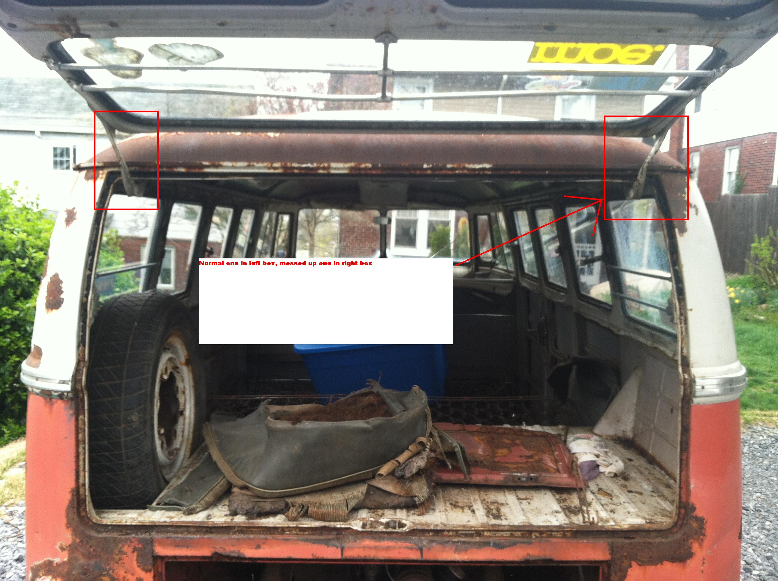 I have got some questions about my bus's rear hatch. I believe the hatch itself if straight and fine, but the right side does not look straight, it looks like somehow it got bumped or bent.