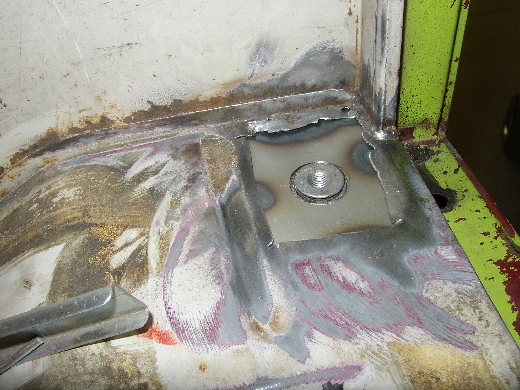The left seat belt mount was a bit funky looking, but it wasn't until I cleaned it well did I find it was pretty rotted. Here's an old pic zoomed in, I didn't shoot any closeups prior to cutting it out.