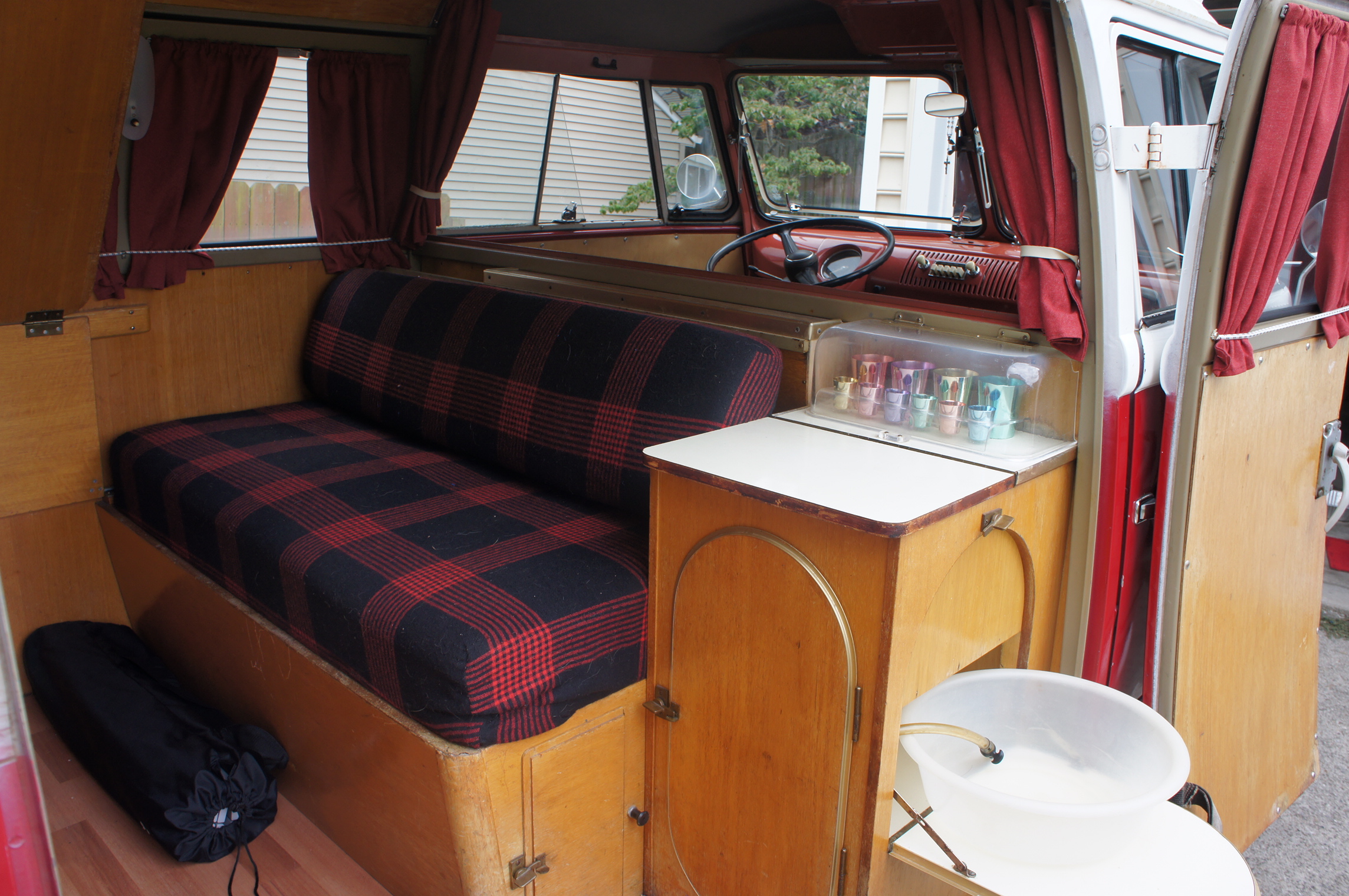 From what I was told... all things are original to the bus. I am not sure hw you would prove that. The cups are stamped, the sink bowl I am not sure, I will have to look. I have the the child's hammock and the canopy structure with privy tent. I tried figuring out how to put it up but really had a hard time with it. Looking for help with that one. I do not have the enders stove though. I would love to complete the bus with it. So, I was looking on line, finding the correct model that came with the bus is hard. I will keep looking. The ice drip tray is just a square shaped tray, with a little spout and hose attached to it. So, maybe not original? I should probably look for a stamp on that too.