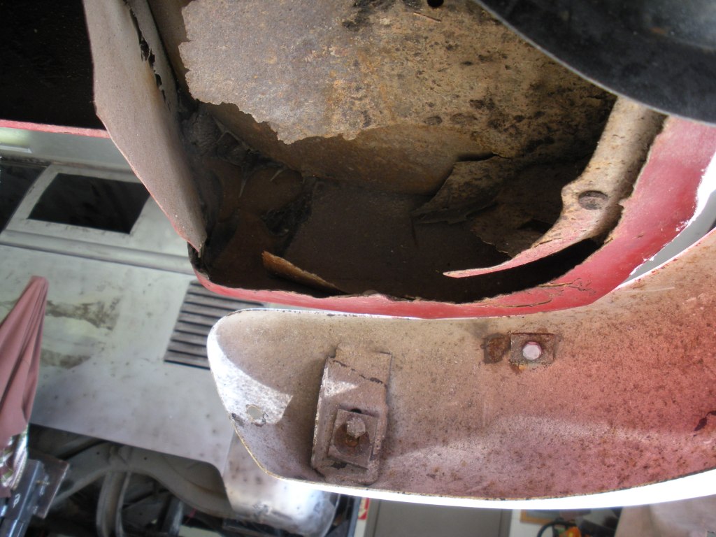 At first glance all looks normal... Underneath, not so good. Check out how squared off the bottom of the corner is This is how they repaired stuff before quality replacement metal was available...brazed and 1/2 of bondo to boot