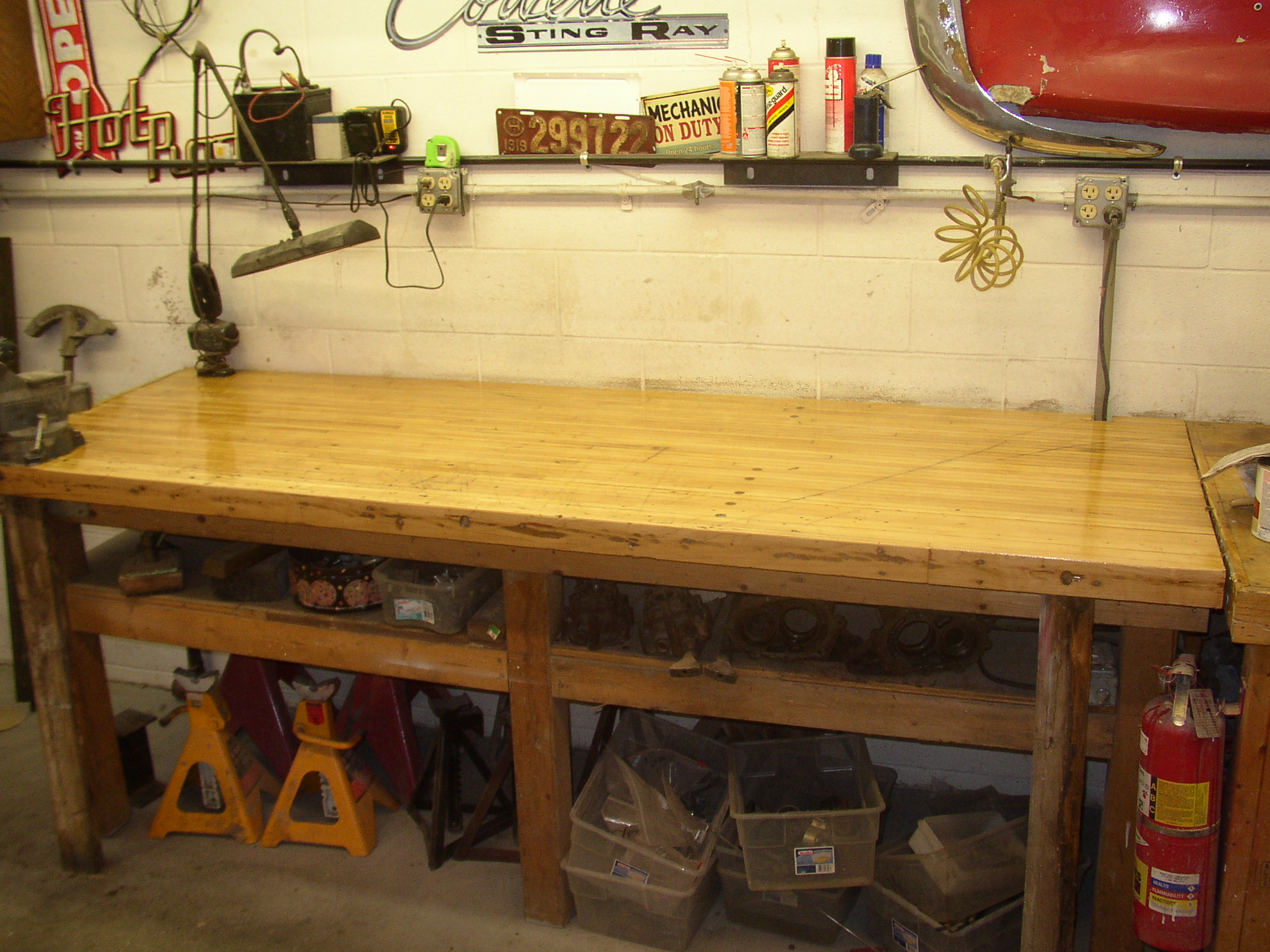 While waiting for 6V parts, I decided to refinish my workbench. It's an old bowling alley chunk, probably maple about 2" thick. Belt sand, D/A, and 4 coats of poly for that wet look. I'll probably skip the wet sand, buff, and wax. I figured if "L" can do it, so can I.