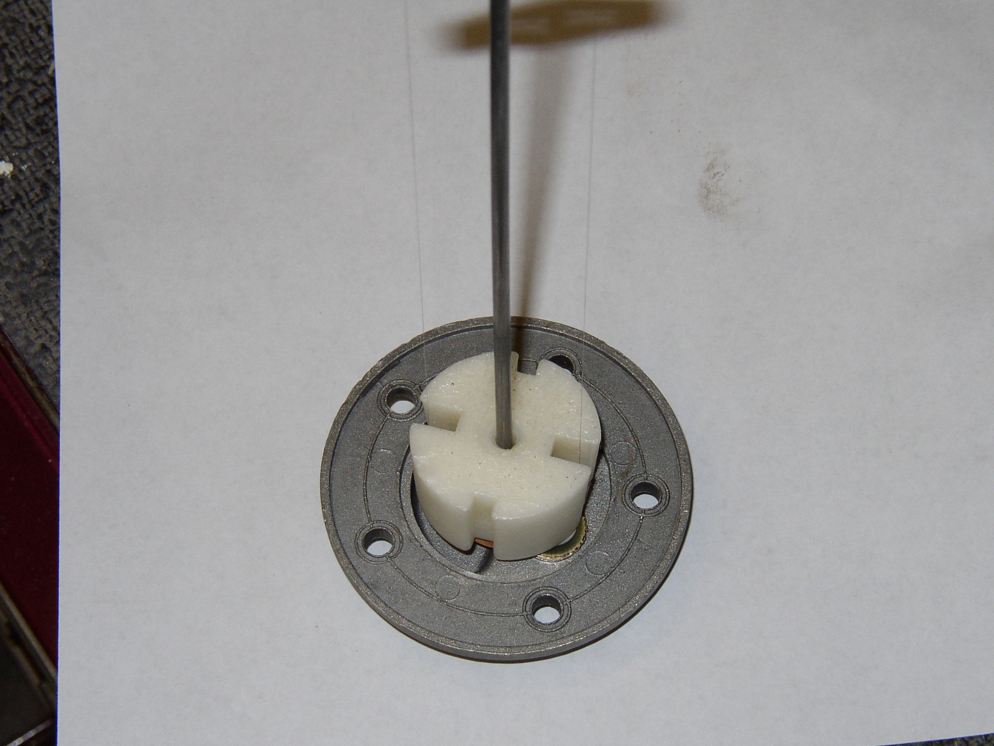 The pin slides in with finger pressure and doesn't fall out. It turns with very minimal force but has zero side play in any direction. Success!