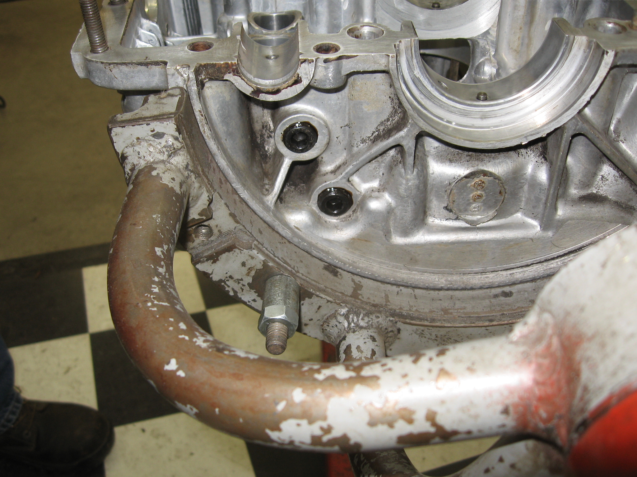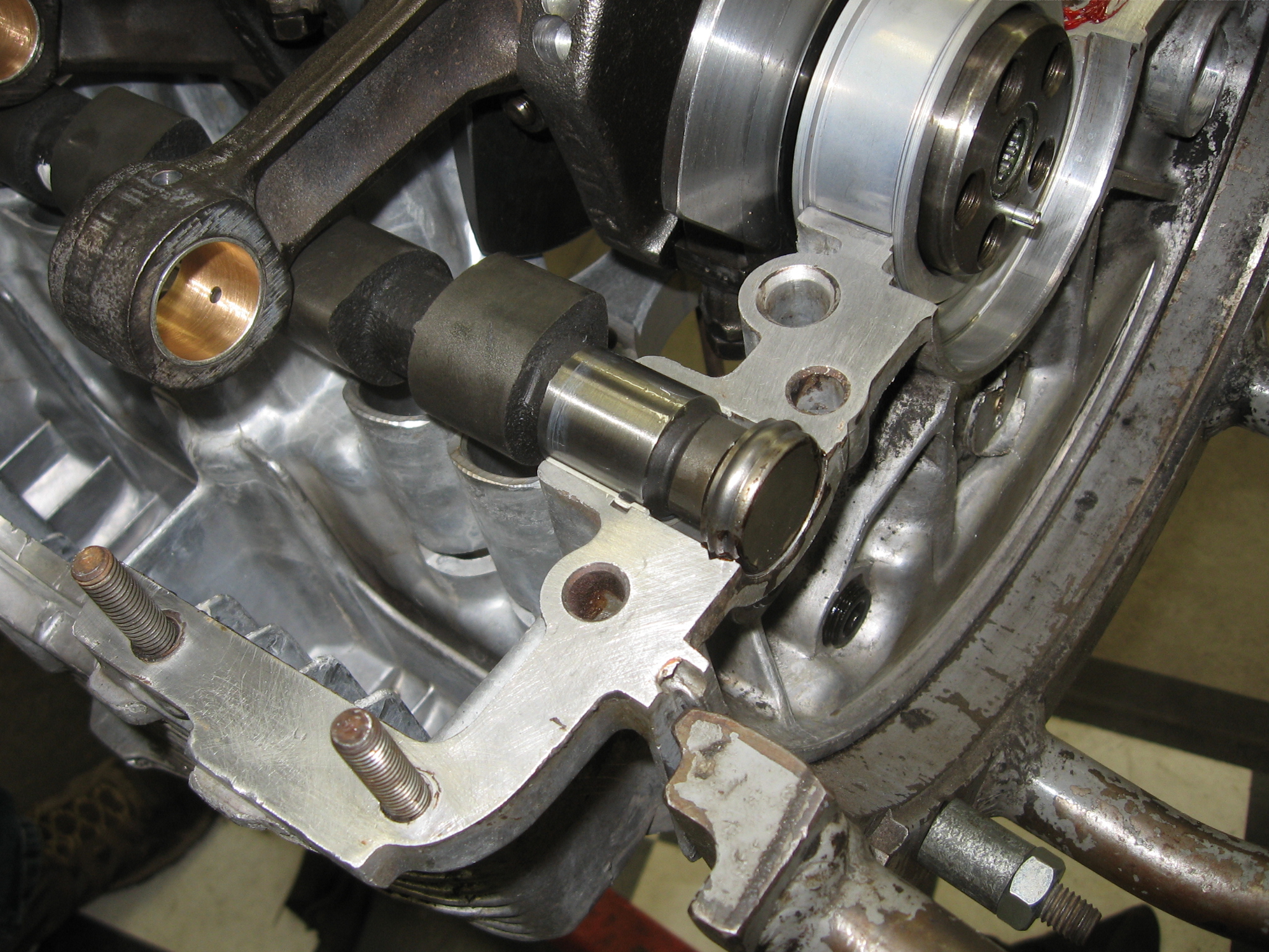Just a note here. ALL replacement cams come with bolt on gears. Most all replacement oil pumps will have clearance issues with the cam bolts and the pump. Note the low profile heads on the cam bolts. If you do not check this clearance,THIS WILL HAPPEN. Now we are ready to stick the case halves together in the next installment
