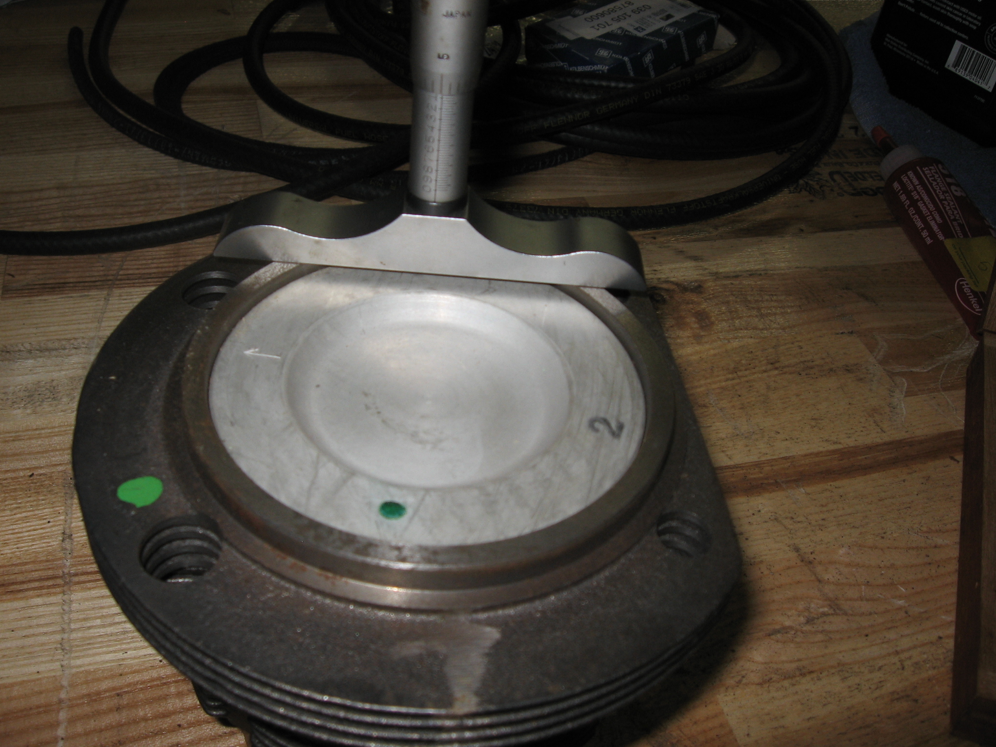 I measure the deck ht. WITHOUT THIS shim/gasket. THEN, figure the compression ratio. With a stock or NON STEPPED head, you do this,substituting various shim thicknesses to get to the comp ratio desired. 7.1:1 was the stock ratio. This is a bit low,but VW was trying to meet emission standards and lowering the comp ratio was what they did to do so. I shoot for 7.6:1. This is the comp ratio for U.S. spec 2L Porsche 914's. Euro spec (flat top pistons) were 8:1