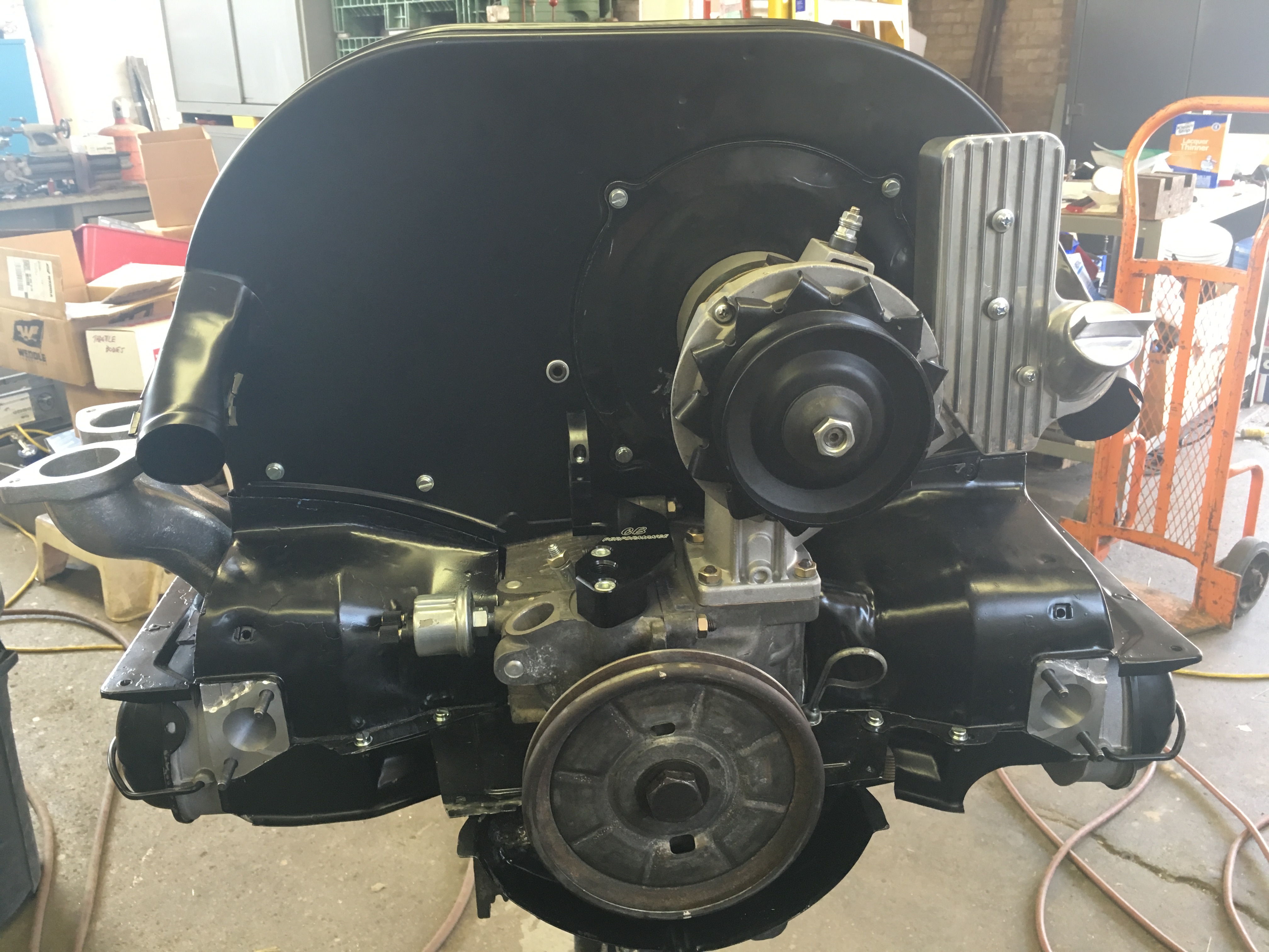 Got a little more accomplished last night. Cleaned and painted some tin. Mounted oil the mighty T4 oil cooler and alternator stand. Next will be adding tin and setting up the T-stat with flaps.