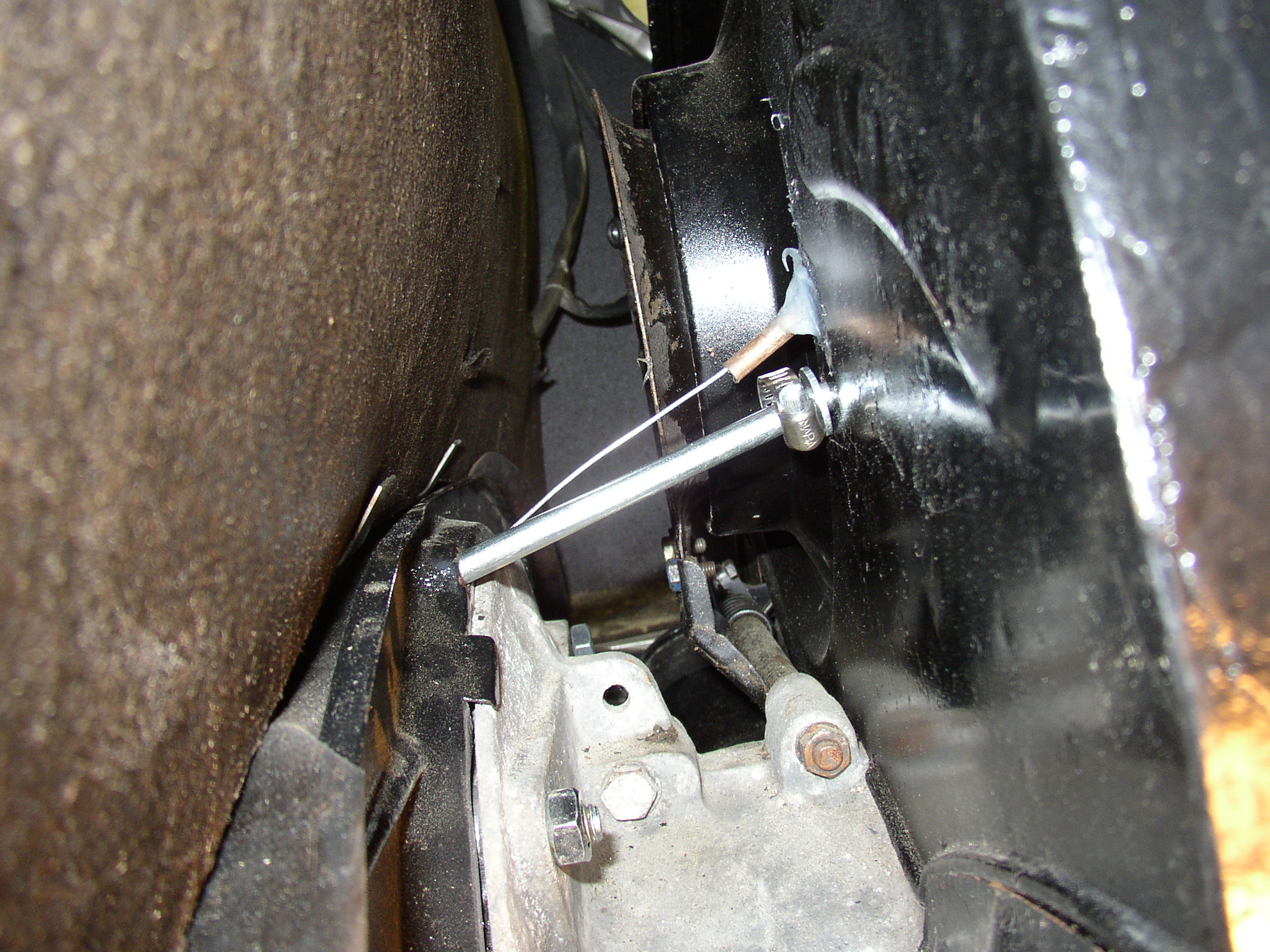 So we fix 'em up. The throttle cable was mucked up, too. I see this frequently, especially after the engine weatherstrip has been replaced. You have to take a die grinder and make clearance for the throttle cable and Bowden tube, which this car didn't have from the factory. It does now.