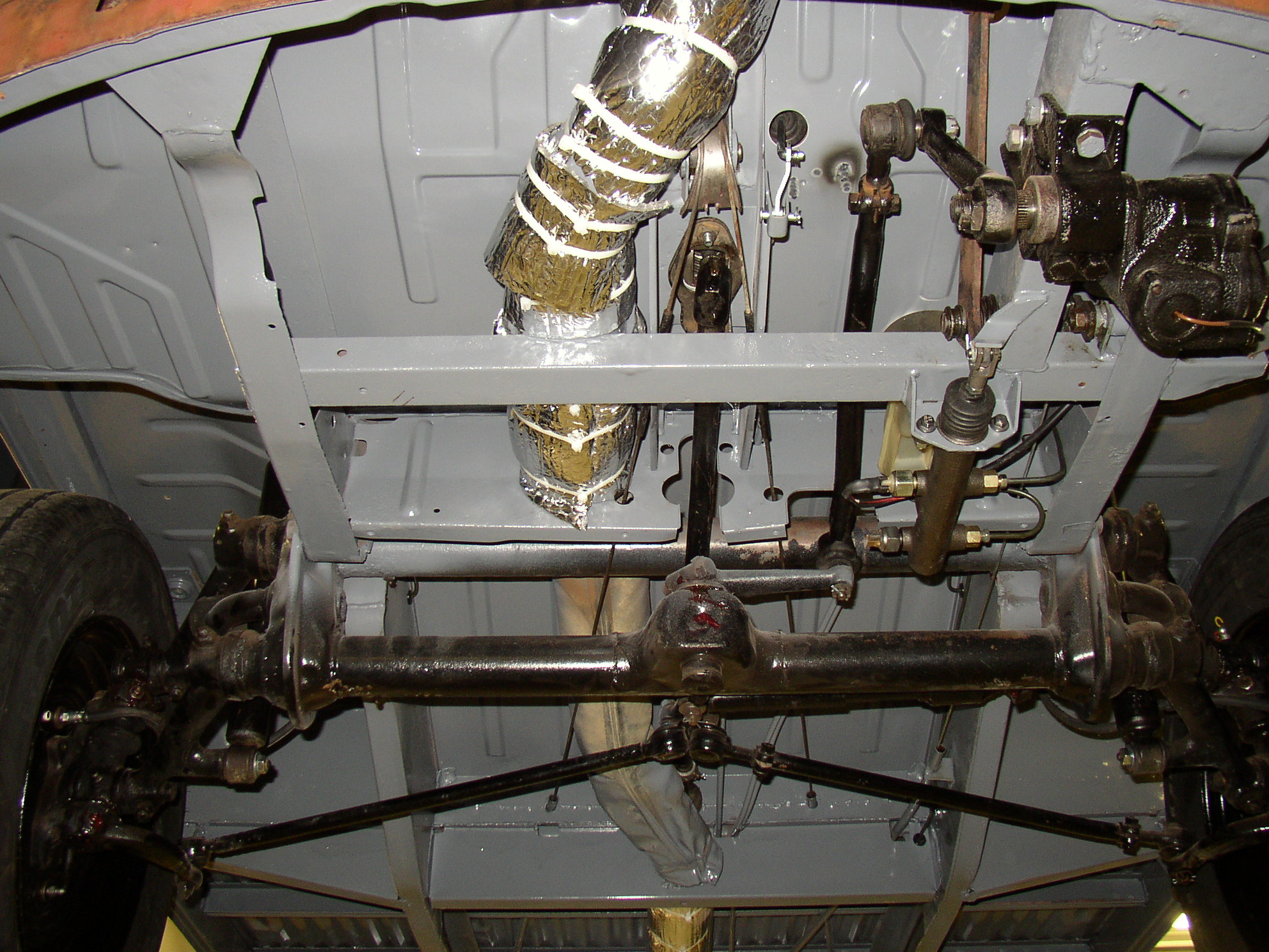 Here's the final result of all of my work. You wouldn't believe this, but to clean, paint and assemble the axles (nothing inside the trans!) I checked my calendar, I have 7 full (6 hour) days. This is assembling the axles, blasting/painting the (4) brake backing plates, chasing all of the threads, checking/replacing bearings, replacing nose bushings, freeing up/replacing clutch arm/shaft, and blasting the wheels and painting them. The wheels and axles were shot with a gun, the trans case was rattle can. I probably have 20something hours in the tranny and axles alone. Is it because I do a good job, or am I getting older and slower? Don't answer that.
