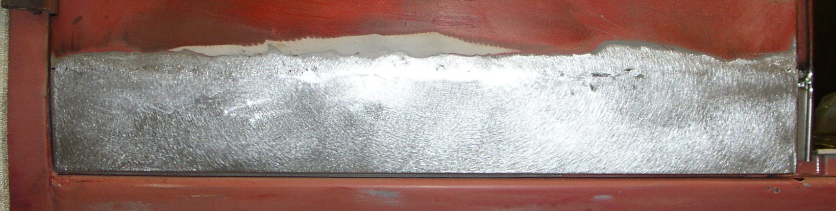 On the right is the weld, in the middle I've ground it out with the hard disc, and on the left I finished with the flap disc.