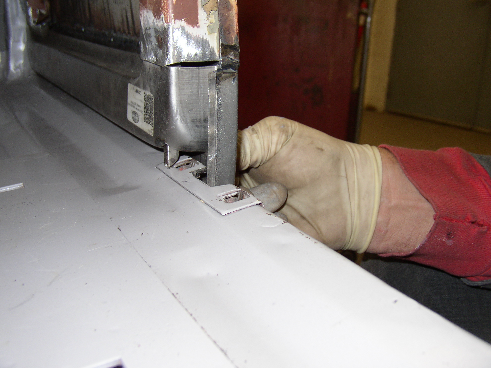 Now size up the inner panel and see how it fits into the floor. So far, so good. Note the red/pink edge of the rocker is even under the panel......