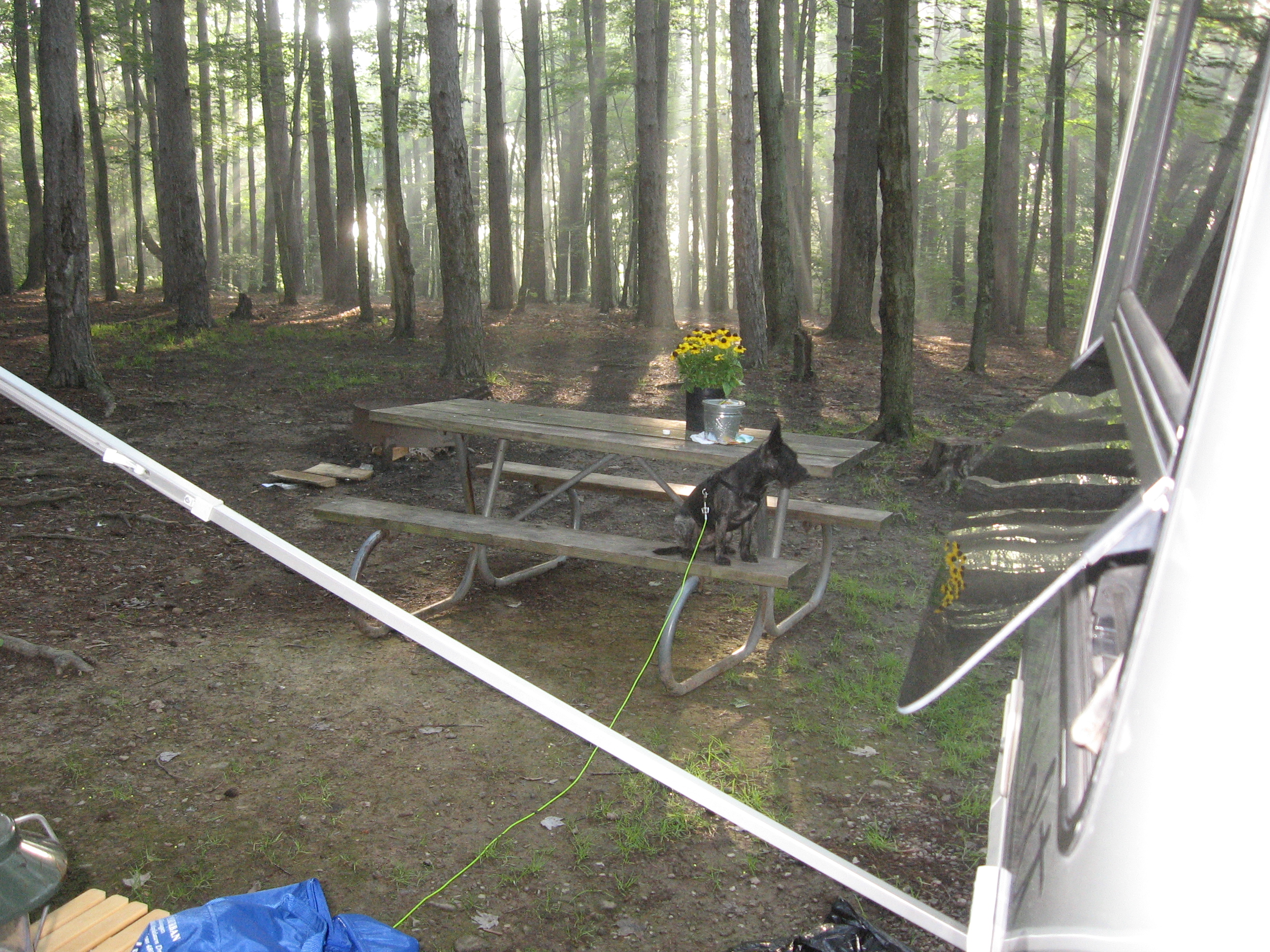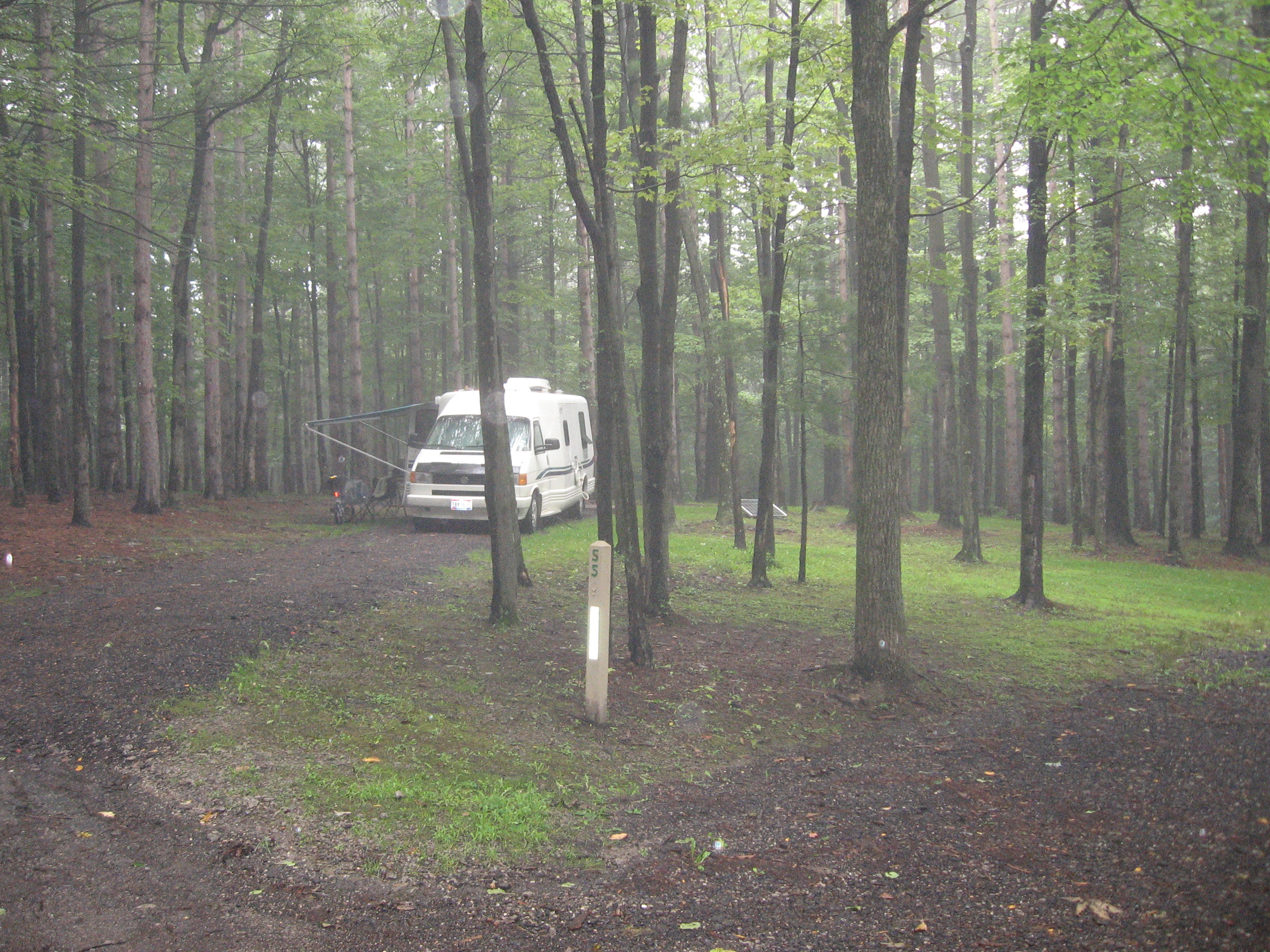 I want to thank 21 window and busboy for turning us on to another GREAT campground. Beavercreek State Park (OHIO). Located about 20 miles south of Columbiana on Rt. 7,just east of East Liverpool Ohio. This is a primitive campground,no shower facilities,exept for an cool sun shower. A small consesion stand and VERY CLEAN pit toilets. Only 55 sites,with only 6 electric. Only 2 others in the whole place on Fri. a few more on Sat. but mostly empty.
