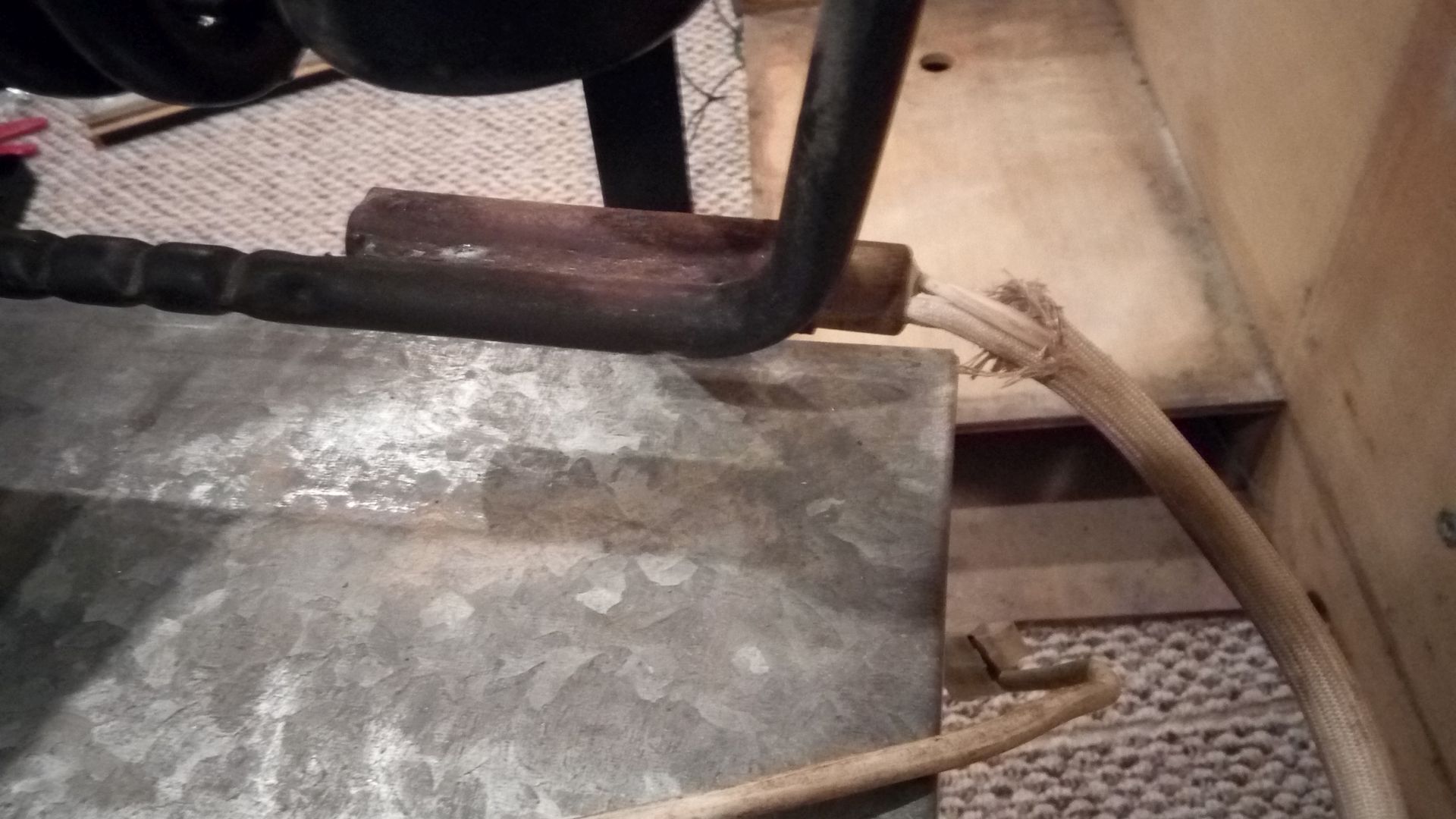I installed a 20 amp inline fuse and extended the temporary test lines to the fridge. Figuring out the rat's next under the thermostat took a while; I could have hooked up the heating element directly to the transformer and call it a day, but I wanted test the dial knob too. Here is the diagram, the fridge wiring is the rectangle in the middle and here my hookups at the triple connector under the Tstat