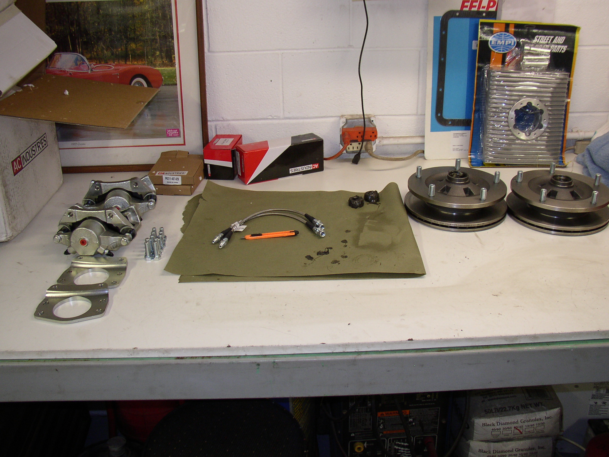 Clean a good case and put it on the shelf for future use. No, that's not silver paint, that's what it looks like when you wire wheel it. Fix some exhaust leaks that were gagging me through the heater, the CO detector says all is good now. Hook up my hillbilly exhaust so I don't die from CO in the shop. Hang the disc brakes I bought last summer, pretty boring and straight forward.
