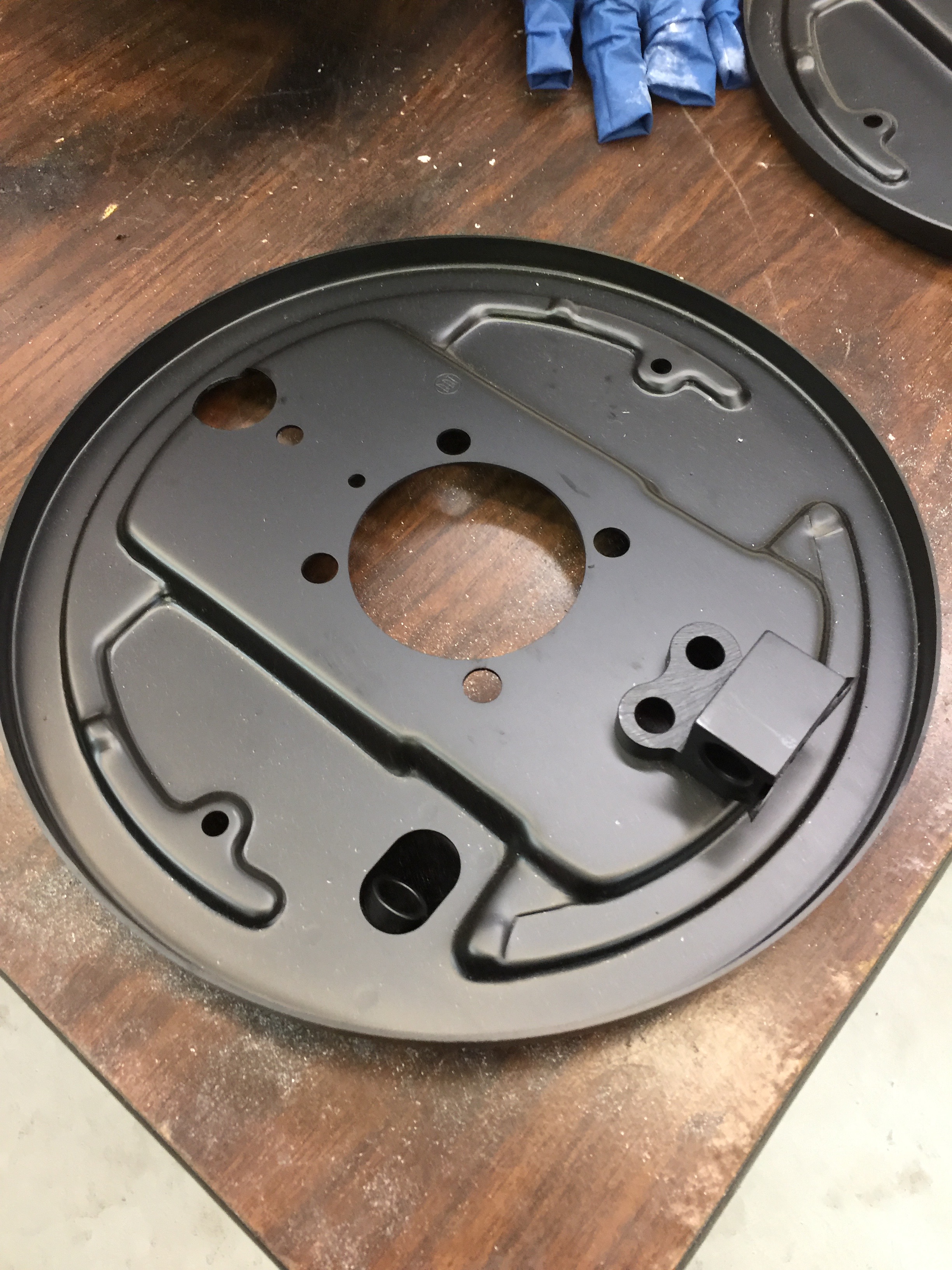 The backing plate, wheel cylynder and brake shoe install is a lesson in persistence and brawn. Bruce showed me how its done the right way and checked and re-checked everything. I realize you've got to fight with stuff sometimes, but once you get in the right place it eventually comes together. I had the backing plate hung up slightly on the dowell, but Bruce found my error and it came out right. Bruce had to "refab" a couple brake parts that had seen better days, but his skill made it all work out fine. And again, can I say CLEAN. He wants everything to be so clean you can eat off it. That;s one lesson I will not forget.