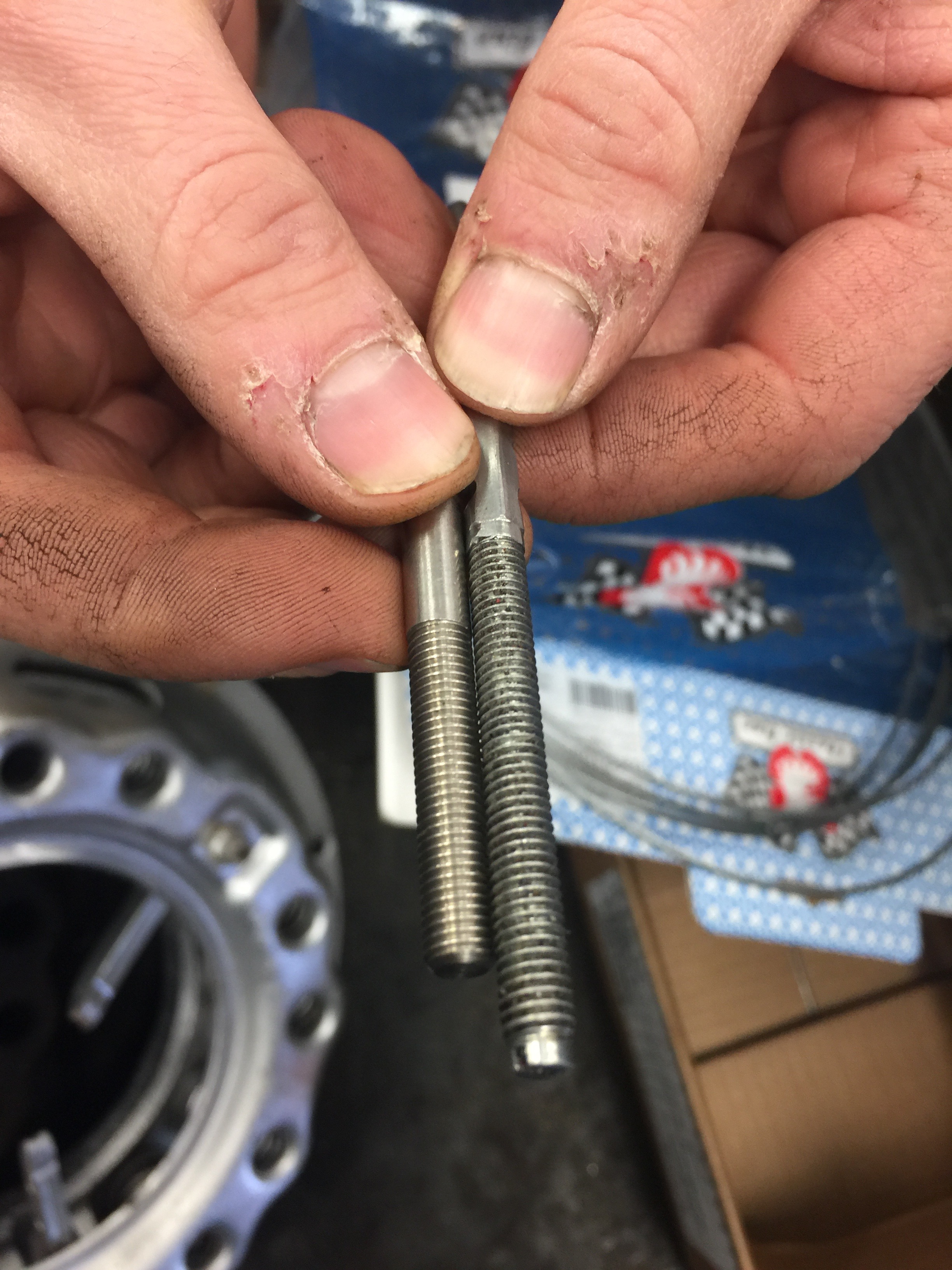 This was the replacement threaded end that failed (one on left) (I'm going to buy that mechanic some Jergens.)