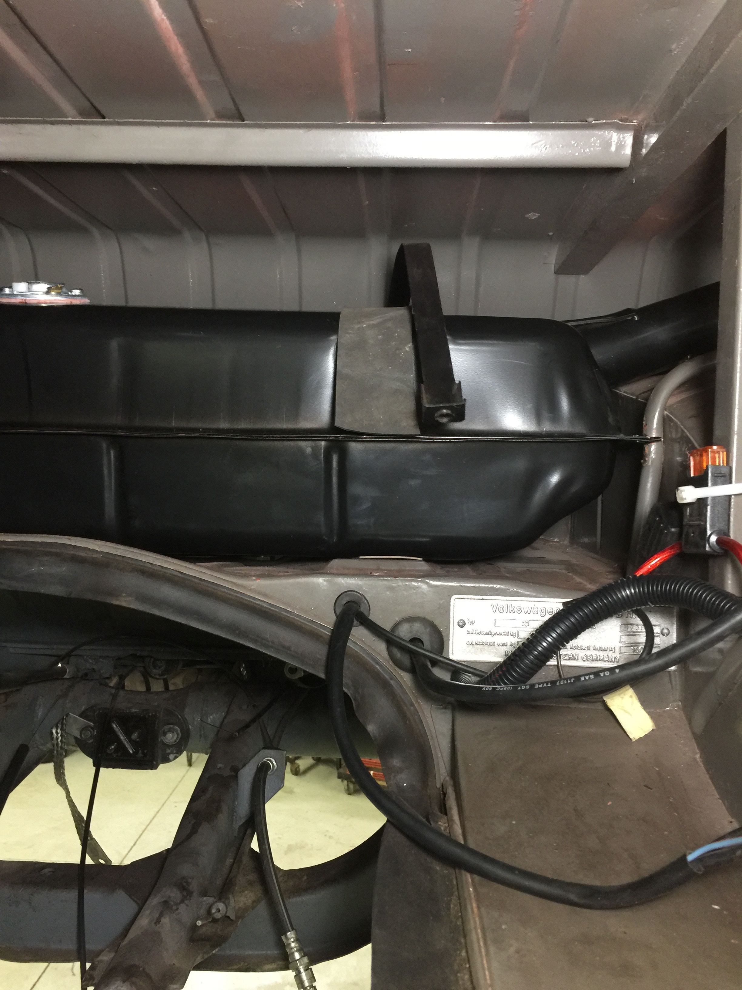 One downer was we had "the e-brake replacement from hell" descend on this project. As most are aware, the original brake cables are too short when you put a big nut trans in an early split. The replacement 64-67 cables that you must buy are then too long. I checked with Kirk and a lot of guys usually "McGiver" up some remedy to make them work by cutting the lines up front to shorten them then rigging up a splice system to hold the lines together. Not perfect, but I've never heard people say they fail. Maybe those folks have never had to use them or didn't survive the experience when they did!