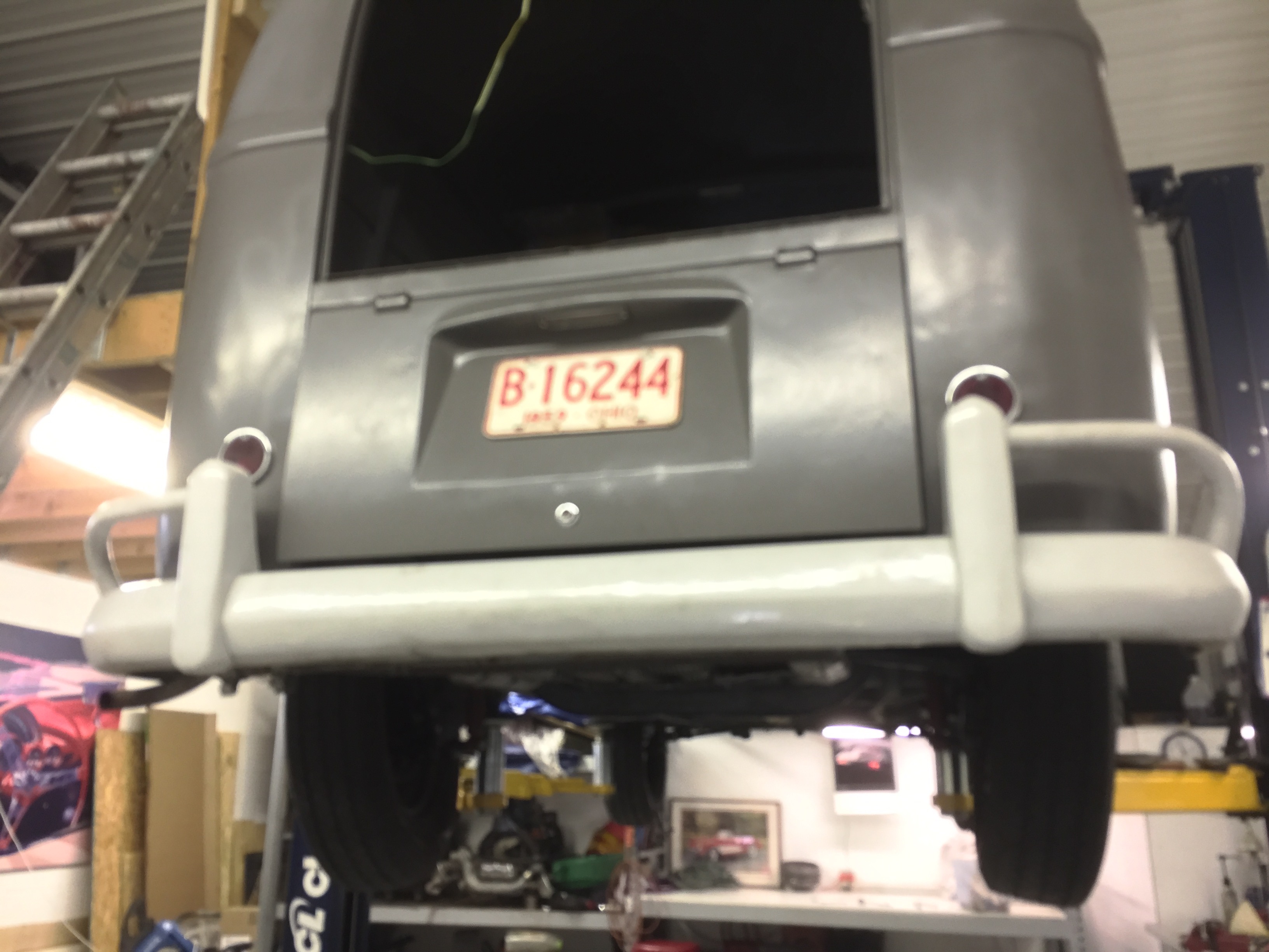 We had a heck of a time getting the rear wheels back on the bus. The 15" wheels on a big nut are pretty snug under the wheel wells. I guess its not surprising since big nuts are normally mated to 14" rims. I'll bet Rick and Aaron love taking rear wheels off their lowered non-RGB buses. I'll bet that's a hoot.