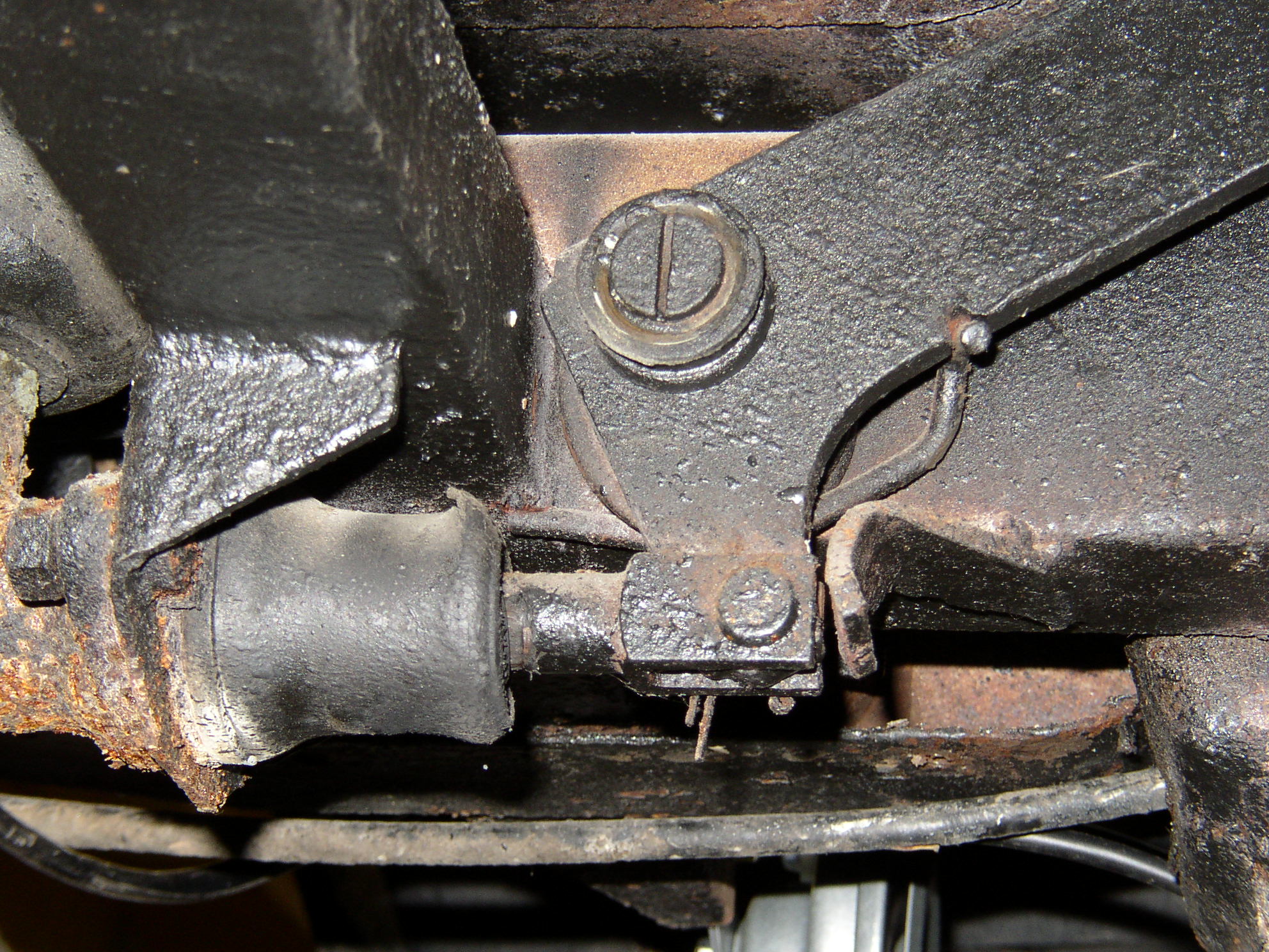 I noticed the brake pedal was not returning properly and something was funky with the pedal return spring. I pulled it off (also rotted requiring a torch) to find previous hack had installed a clutch lever return spring here. Fortunately I had the correct spring on hand. Cleaned, blasted, lubed, new bolts, yadda yadda, works correctly now.