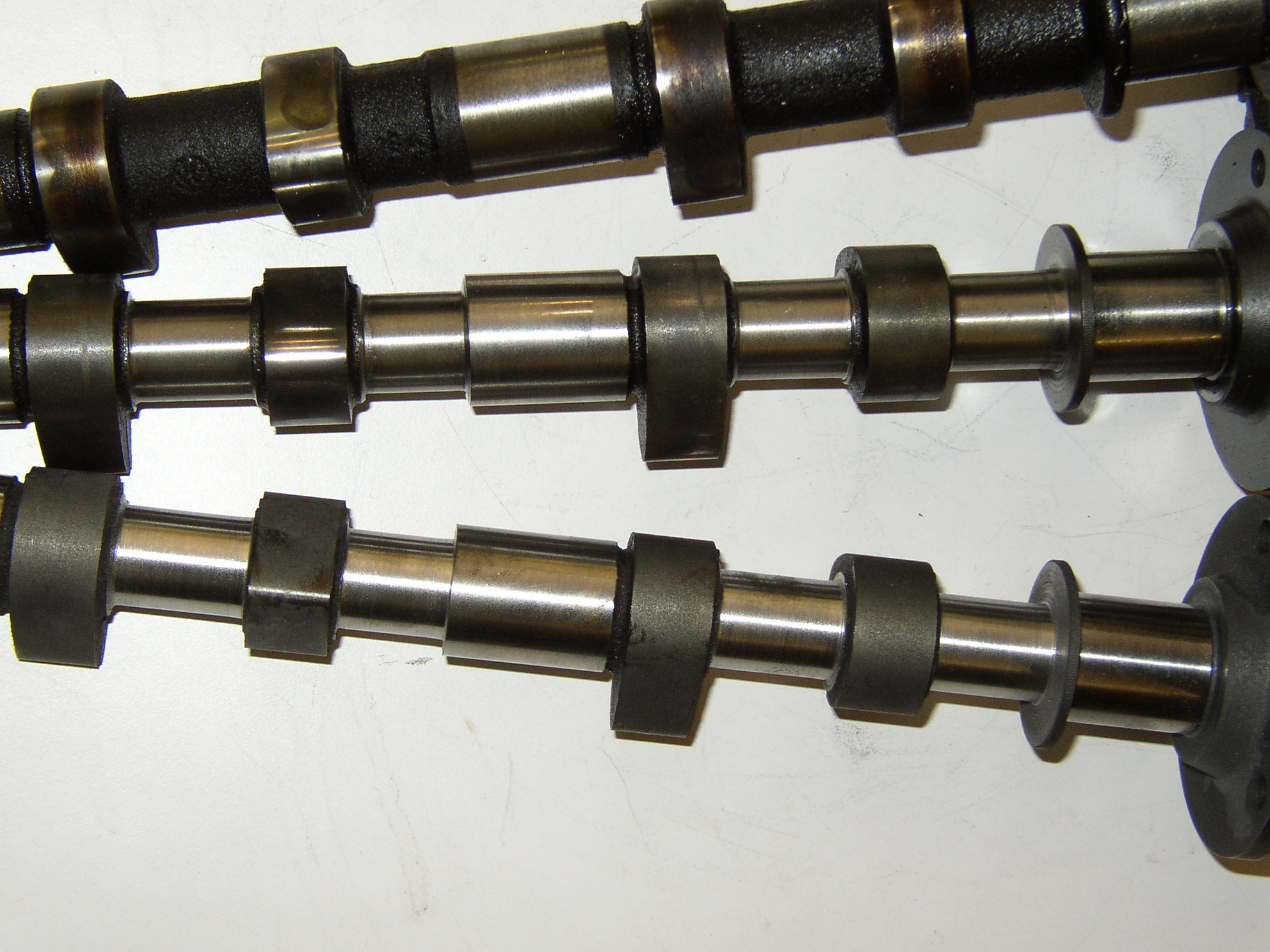 I checked the mains and rods and they look like new but they're Kolbenschmidt bearings. Unfortunately they're not easy to find so it got Silverline cam bearings which show some wear. I'm not sure if this is from low quality bearings or the journal surface on the cam was not perfect but it's not a big deal. I'll replace them and polish the new cam journals with 1000-2000 grit to a mirror surface.