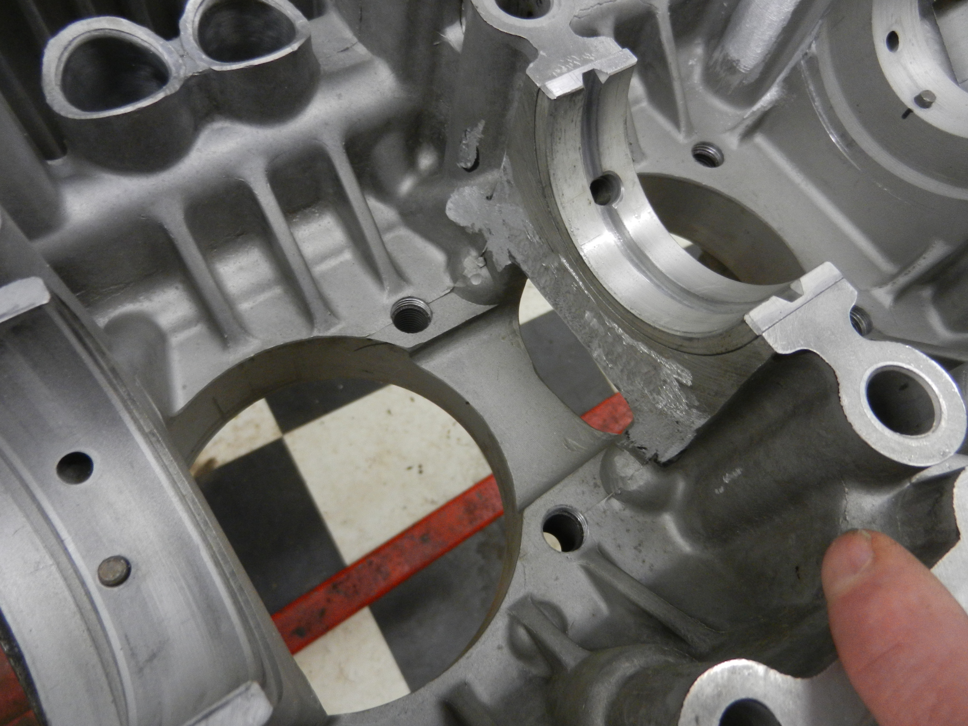 OK. Now we need to check ALL the threads in the case. Important to do this now as it can be a big problem later,ESPECIALLY if it is from a motor that is not just torn down for rebuild. In this case, none of the components are coming from the same motor.