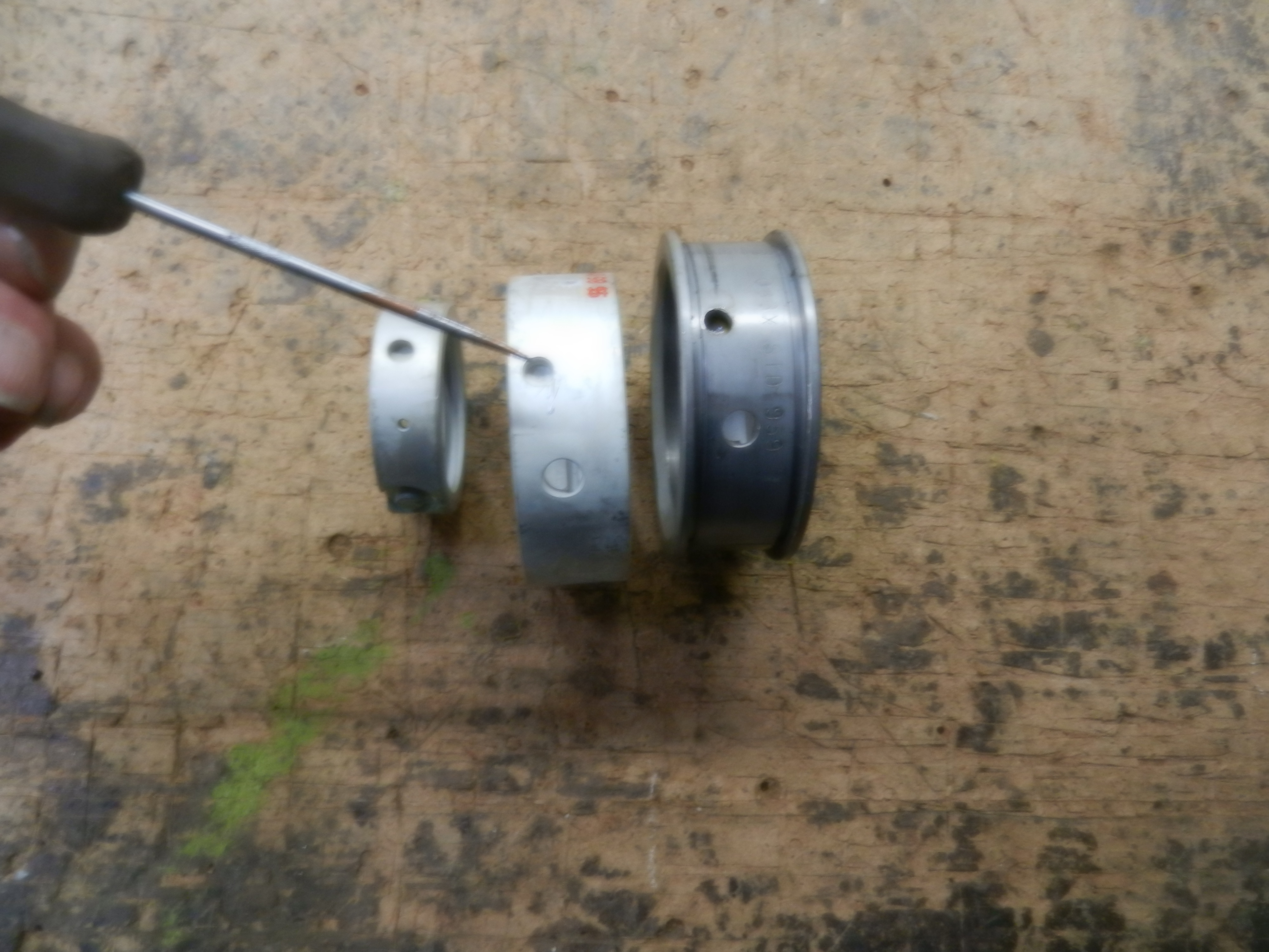 Before we move on. I am going to back up a bit. Before installing # 3 main bearing, you need to orient the bearing, so the dowel holes are aligned.