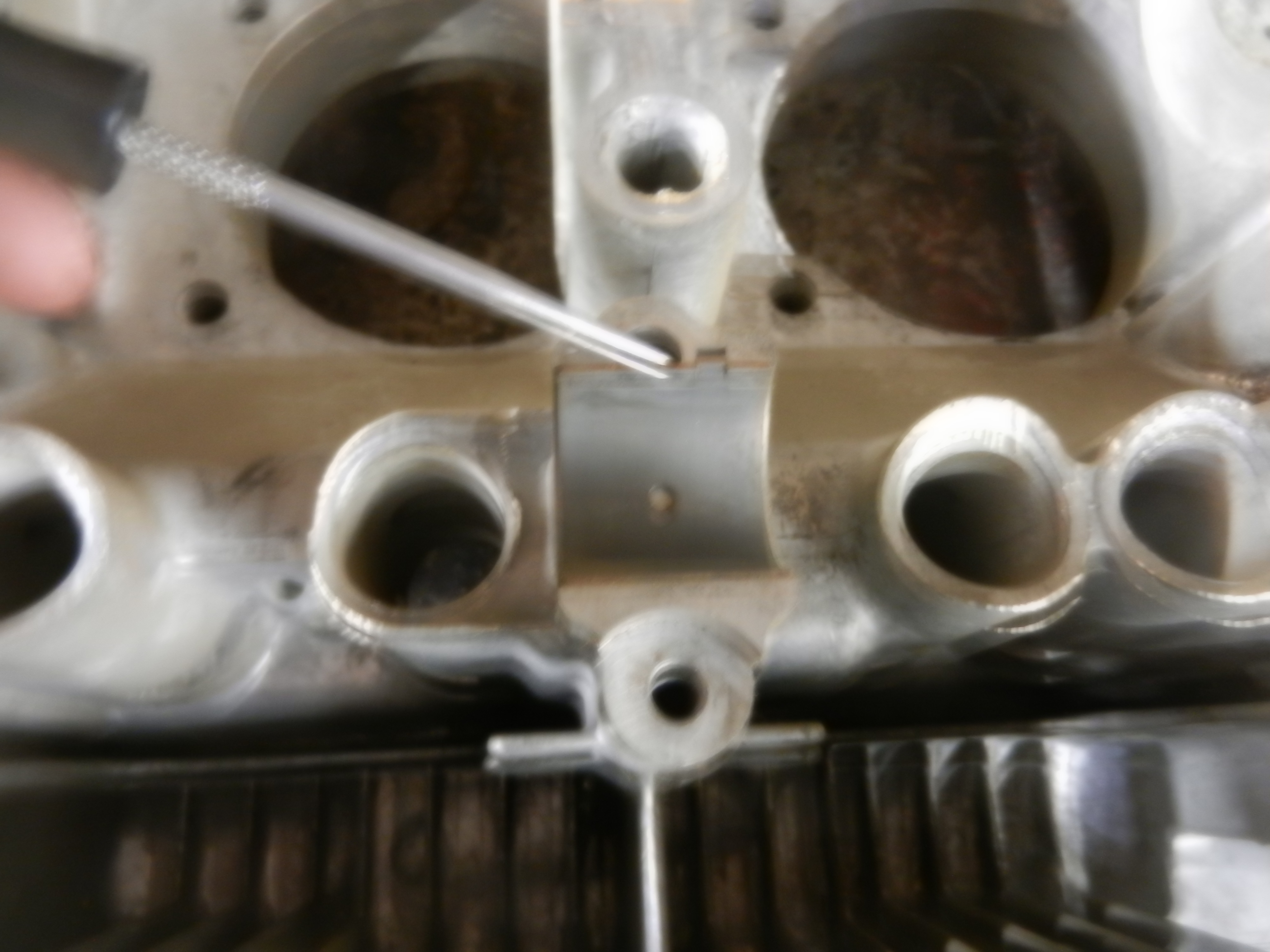 Now, I have to backtrack a bit. Before installing the cam, we install the cam bearings.