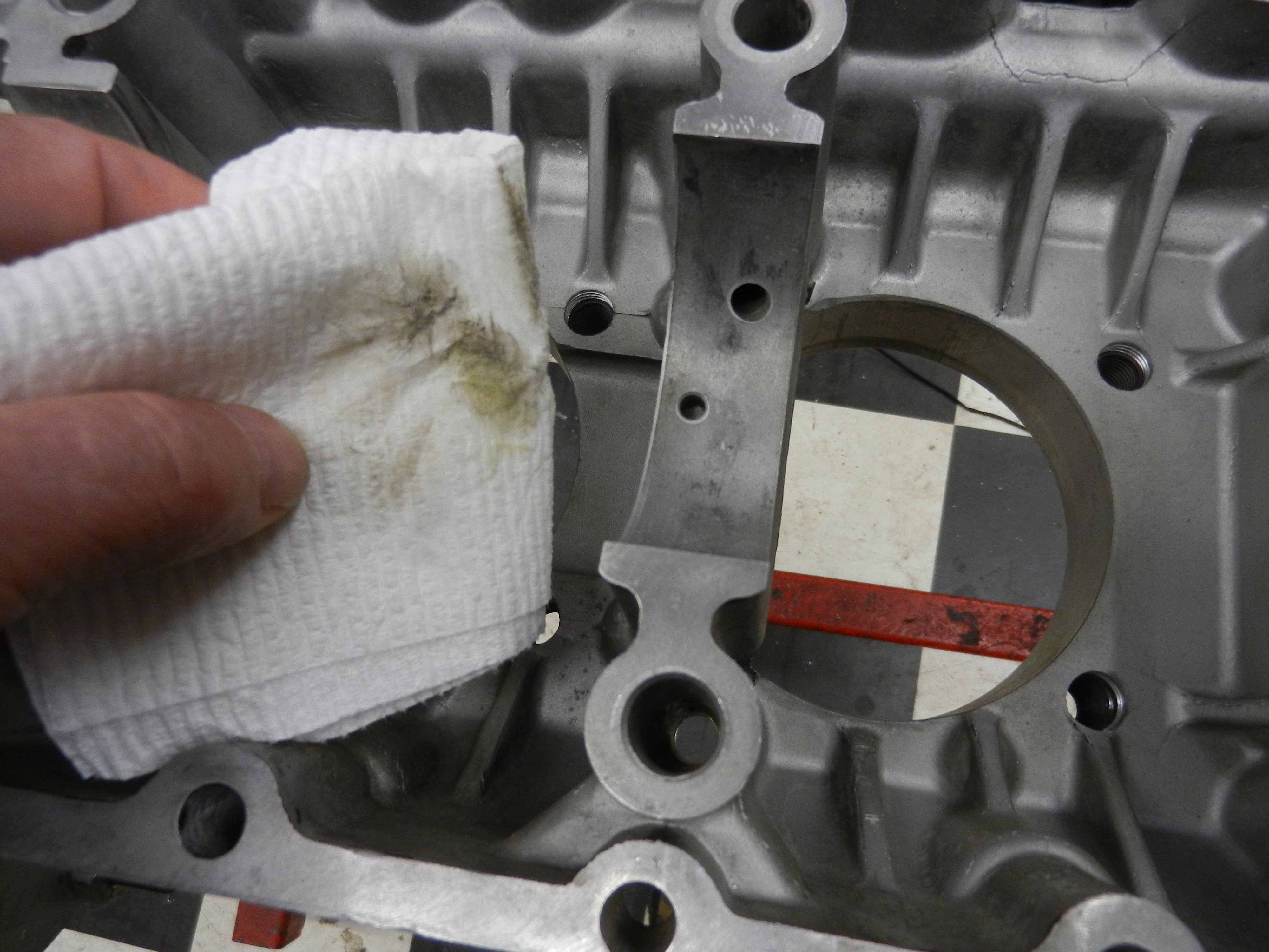 Now, I have to backtrack a bit. Before installing the cam, we install the cam bearings.