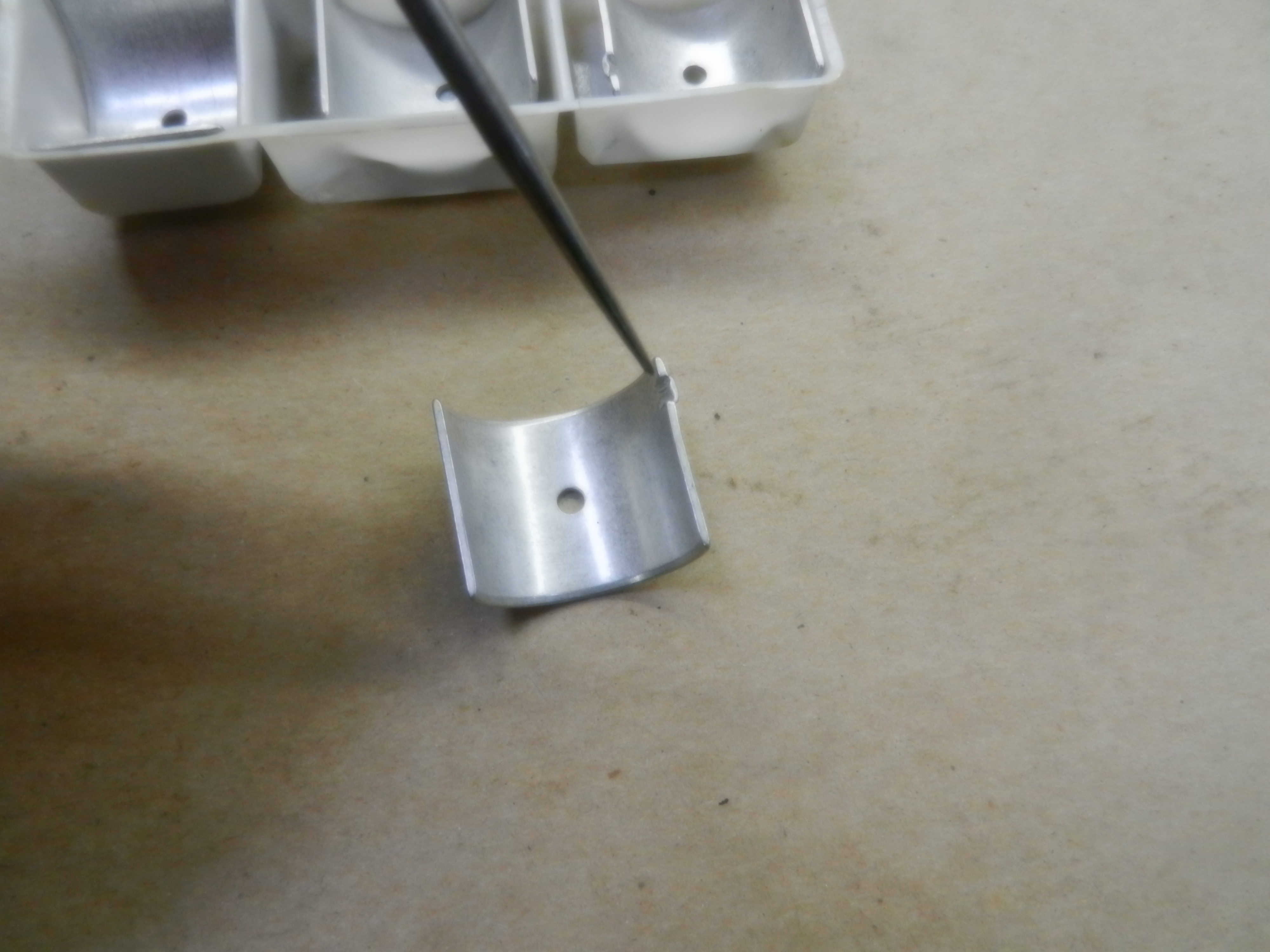 Now we are going to hang the rods for some measurements. First, wipe the bearings,rod big end and rod journal clean.
